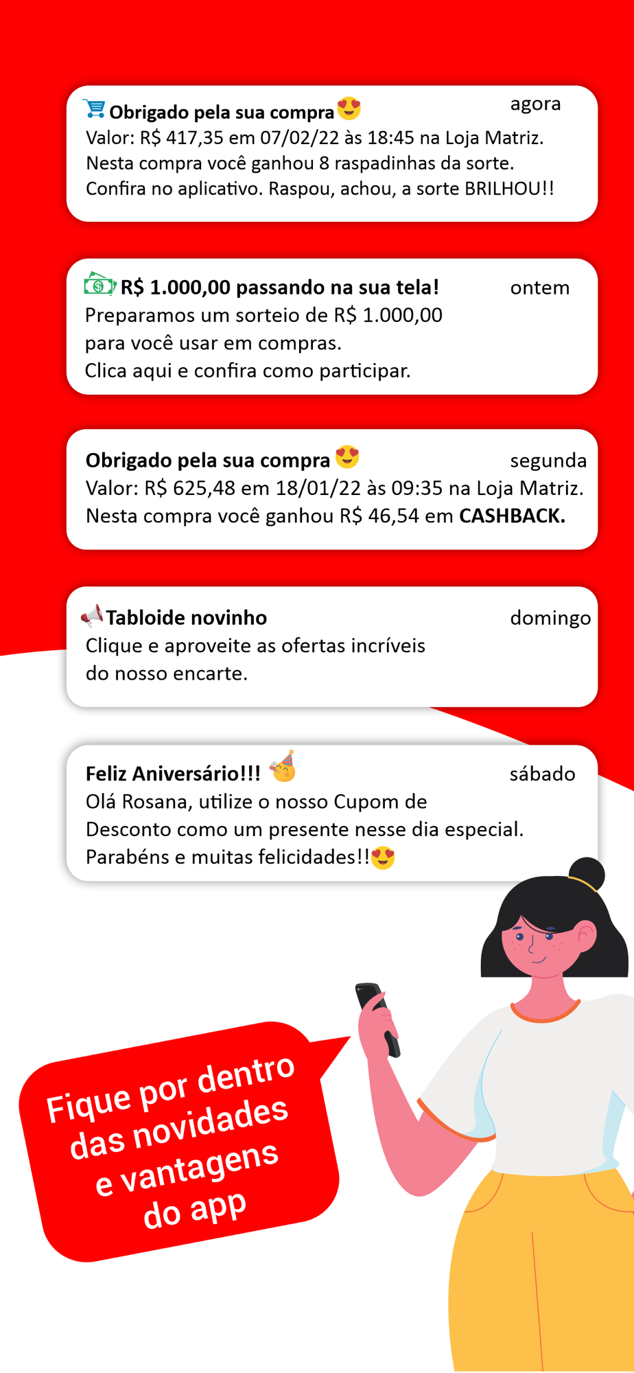 • Indicadas para você: uma lista inteligente exibe os produtos em promoção que mais se aproxima do seu perfil de compras.