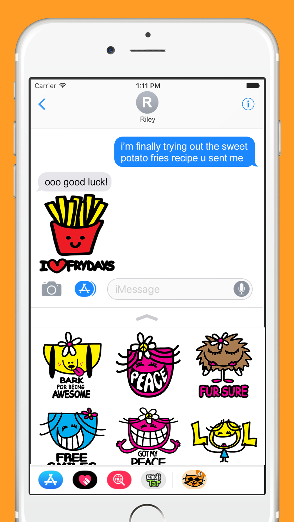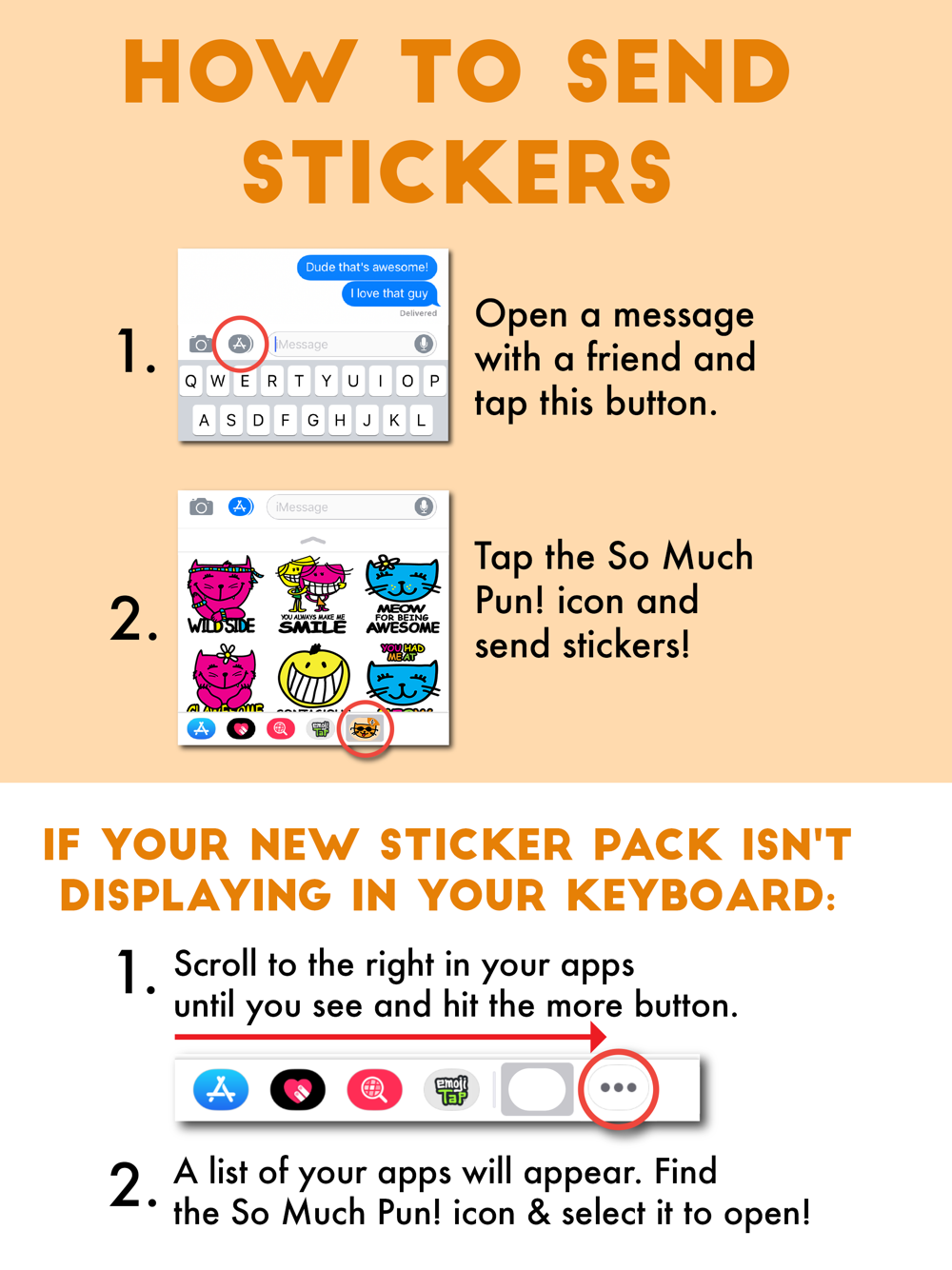 You'll have so much fun sending these punny stickers to all your friends! Pack contains 77 static stickers.