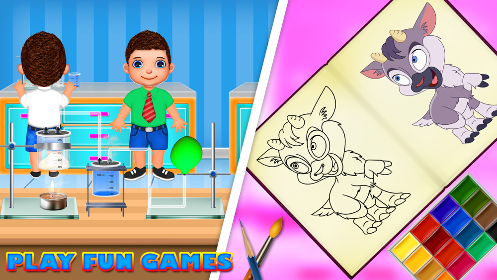 It’s time to welcome your new teacher to your high school. From cleaning up school labs, cooking delicious lunch food in canteen, repairing playing items to performing multiple science tricks & experiments like making colorful snow, laughing gas & learning acid base reaction. Find hidden objects in your class room and place the items on their respective places to complete levels making class rooms neat & clean.