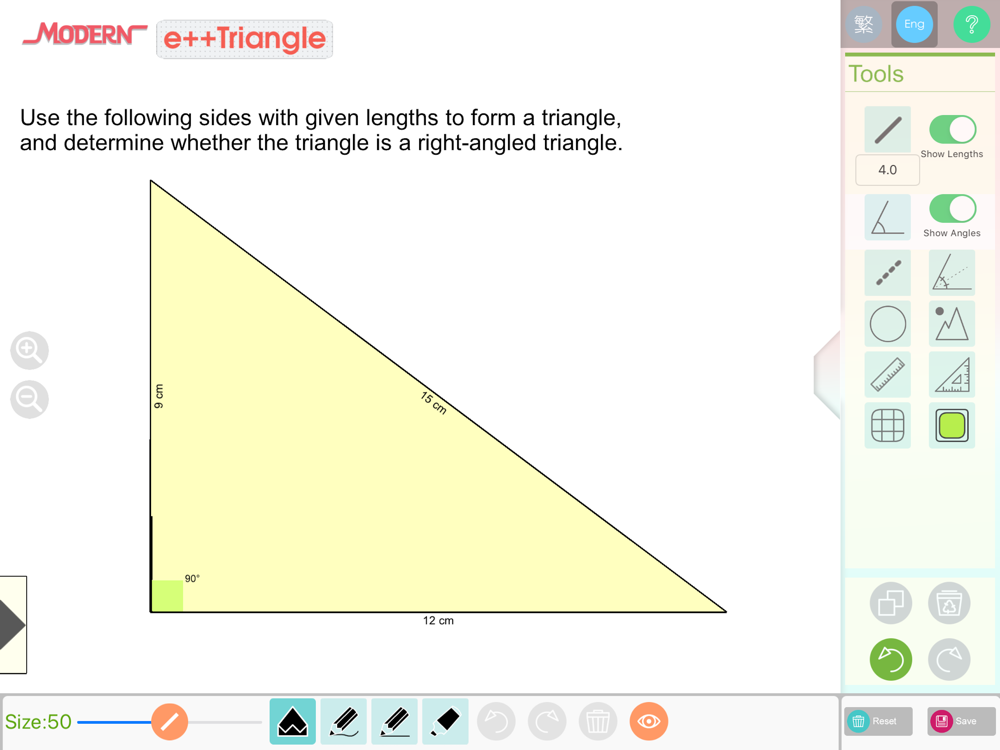 Students can construct triangles for investigation, or choose default questions to observe and verify the properties related to triangles (Similarity and congruence, Relation among the sides of a right-angled triangle, Special lines and Centres of triangles).