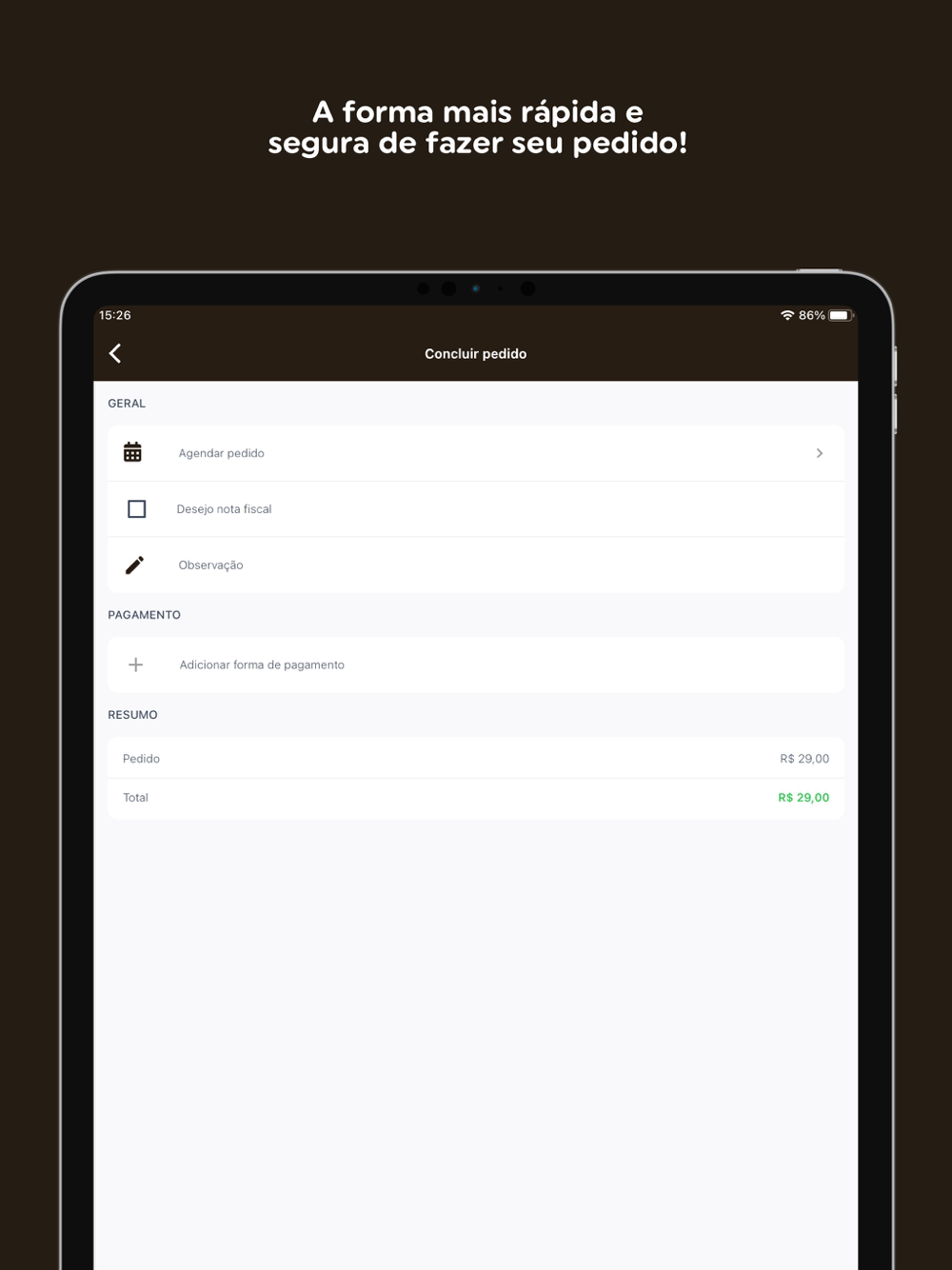 Ei, tem atualização no app pra melhorar sua experiência com a gente!Veja o que atualizamos:- Melhorias no pagamento com Pix.- Correção de pequenos bugs.Atualiza e deixa sua opinião pra gente!