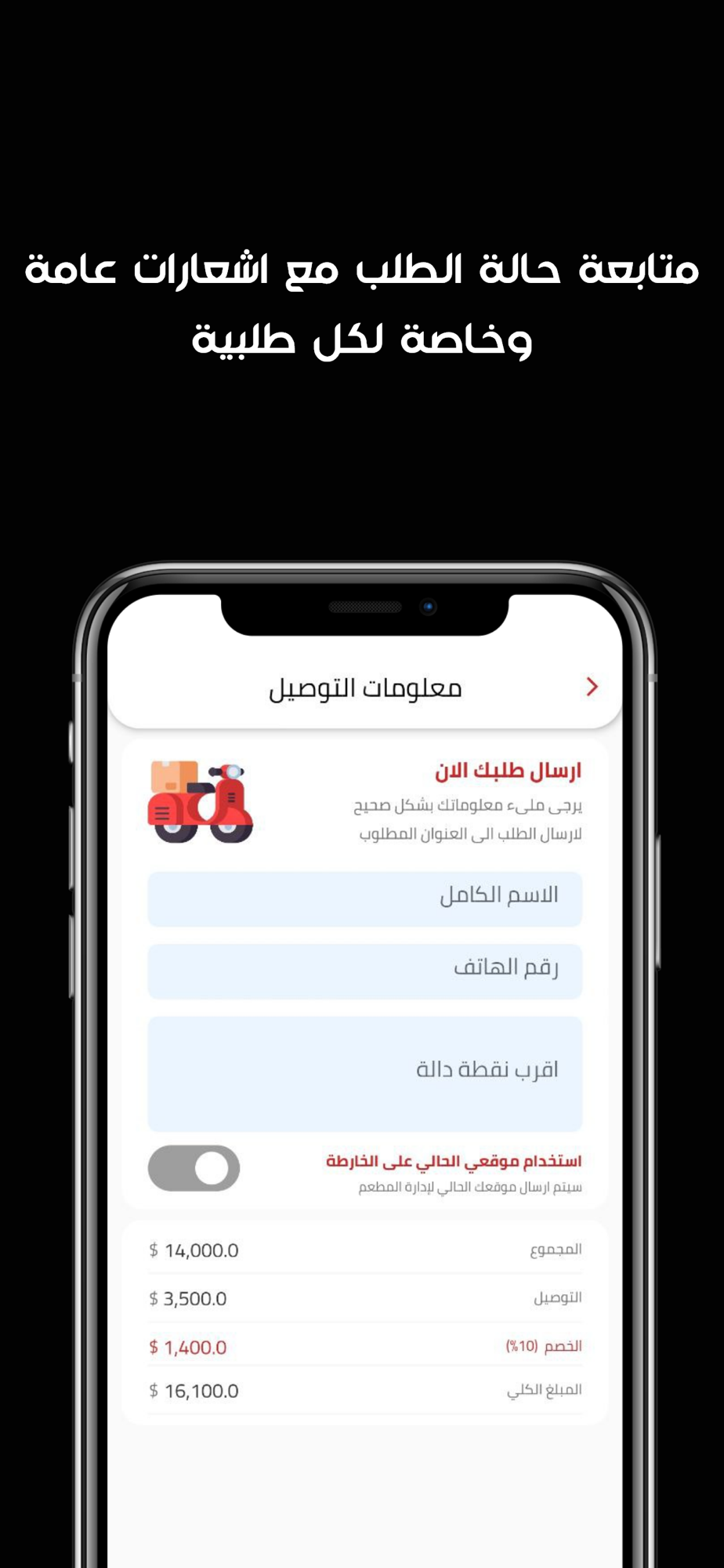 الان تمتع بسرعة وسهولة تطبيق المطعم الخاص بنا لامكانية طلب كافة الاطباق