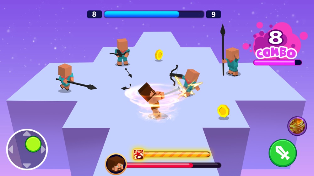Scatter your enemies and destroy one by one. Meanwhile, pay attention not to fall from the platform.