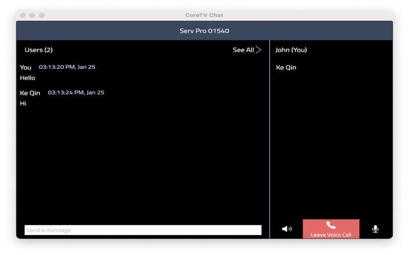CoreTV Chat app works in conjunction with the CoreTV app to bring you voice and text chat collaboration tools revolving around the shared stream.