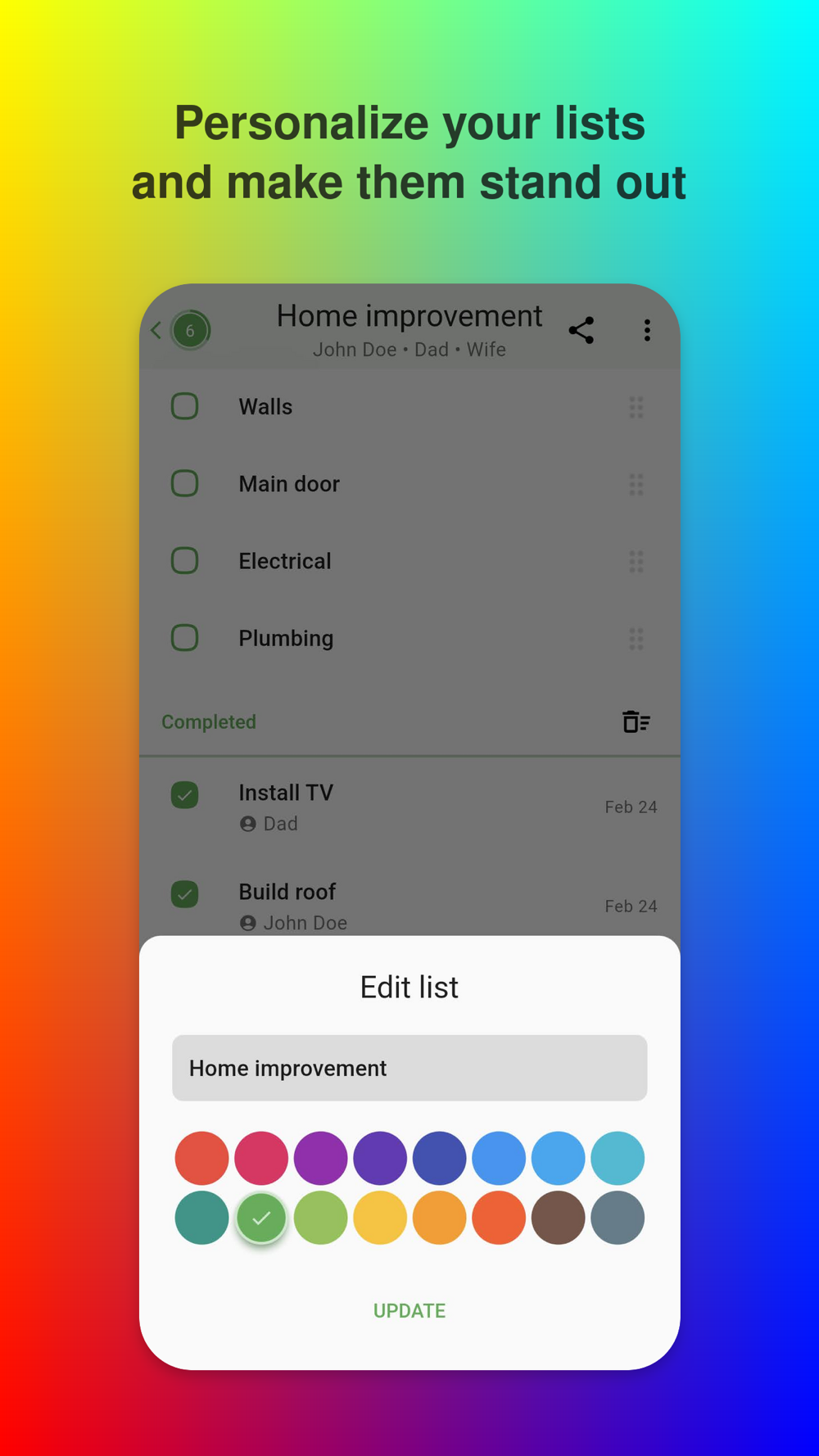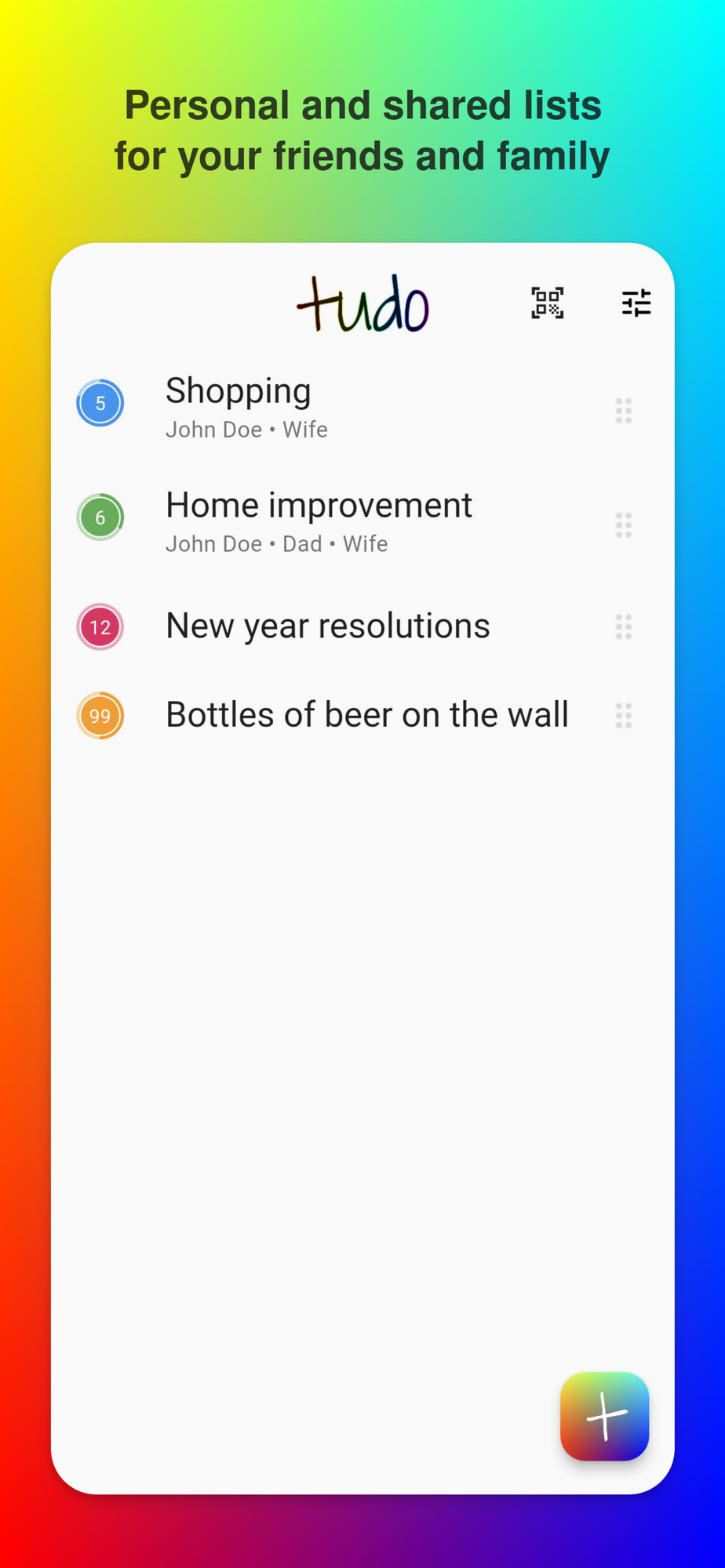 Lists can be shared between your devices or trusted contacts simply using the list id.