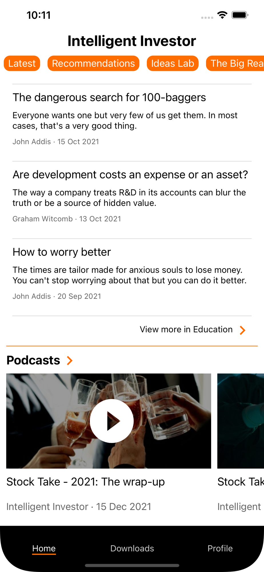 Include Eureka Report sections to the home screen such as CEO Interviews and Weekend Briefing.