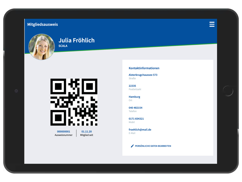 - Digitaler Mitgliedsausweis: Mitgliedsausweis vergessen? Wenn Du Dein Handy dabei hast, hast Du in der App jederzeit auch Deinen eigenen digitalen Mitgliedsausweis dabei - und den von Dir zugeordneten minderjährigen Kindern natürlich ebenfalls.