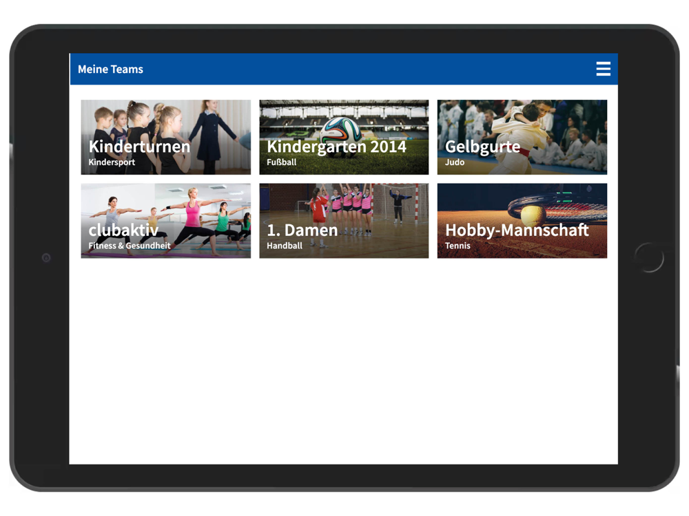 - Team-Bereich: Schau Dir Team-bezogene News an, stöbere in Team-Fotoalben oder nutze Kommunikationsmöglichkeiten mit anderen Mitgliedern, wenn diese dies freigegeben haben.