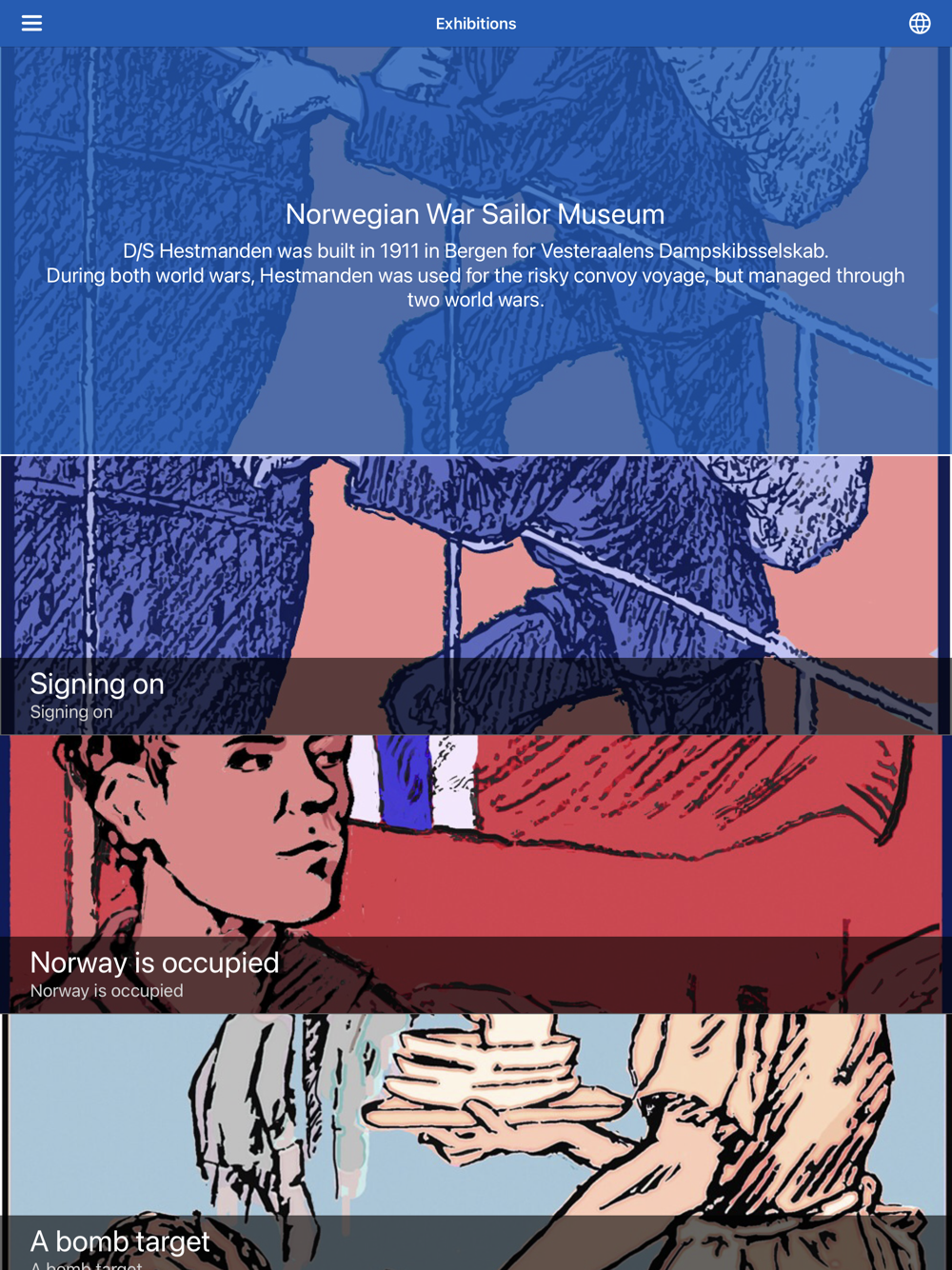 With this audiovisual tour, we want you, as a visitor, to have an even stronger experience of what it was like to be a war sailor during World War II. Some of the scenes take place on board D/S Hestmanden, but the narratives will otherwise paint a general picture of who the war sailors were and their experiences, both during and after the war.