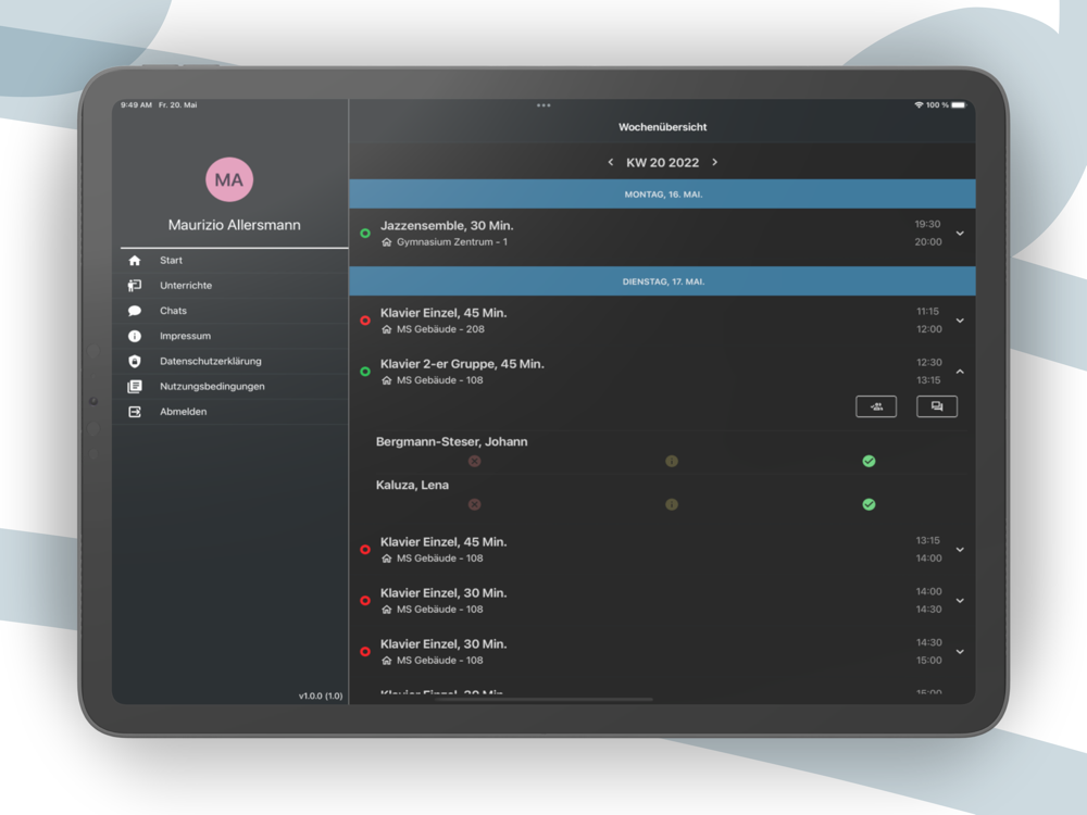 Die App bietet unter anderem einen datenschutzkonformen Chat zwischen Schülern, Eltern, Lehrkräften und der Musikschule.