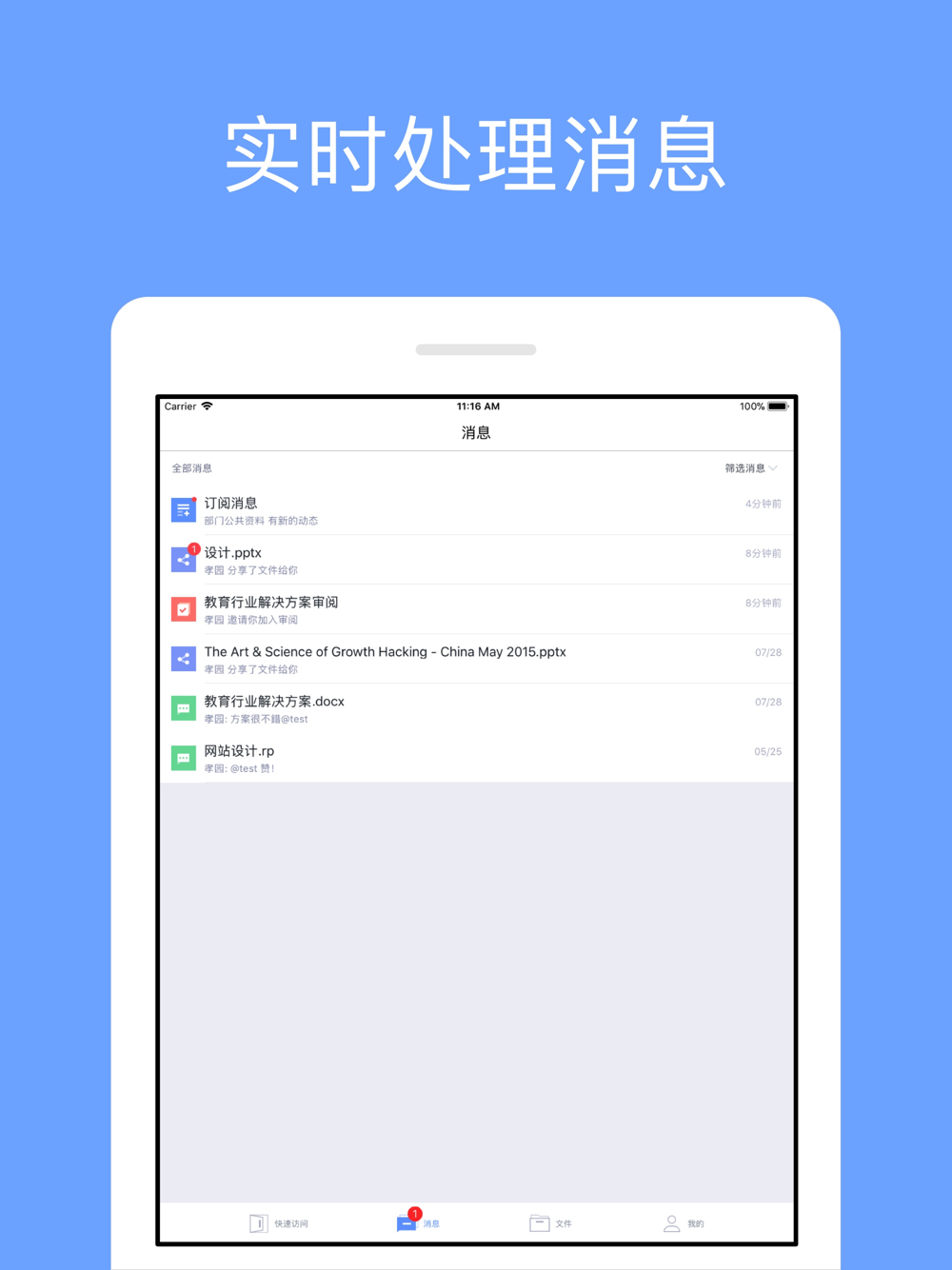 -第一时间通知与您相关的新消息,并可立即回复处理;