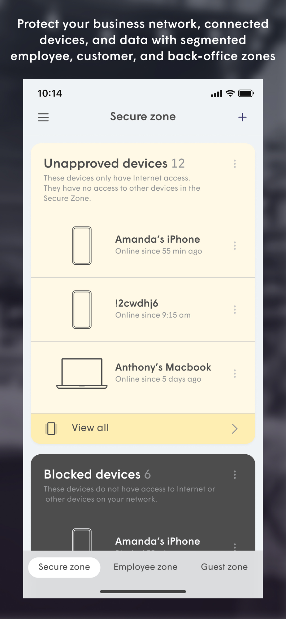 Protect your business network, connected devices, and data with segmented employee, customer, and back-office zones. Using advanced, AI-powered security features, Shield effectively filters threats and keeps you protected against cyber-attacks.