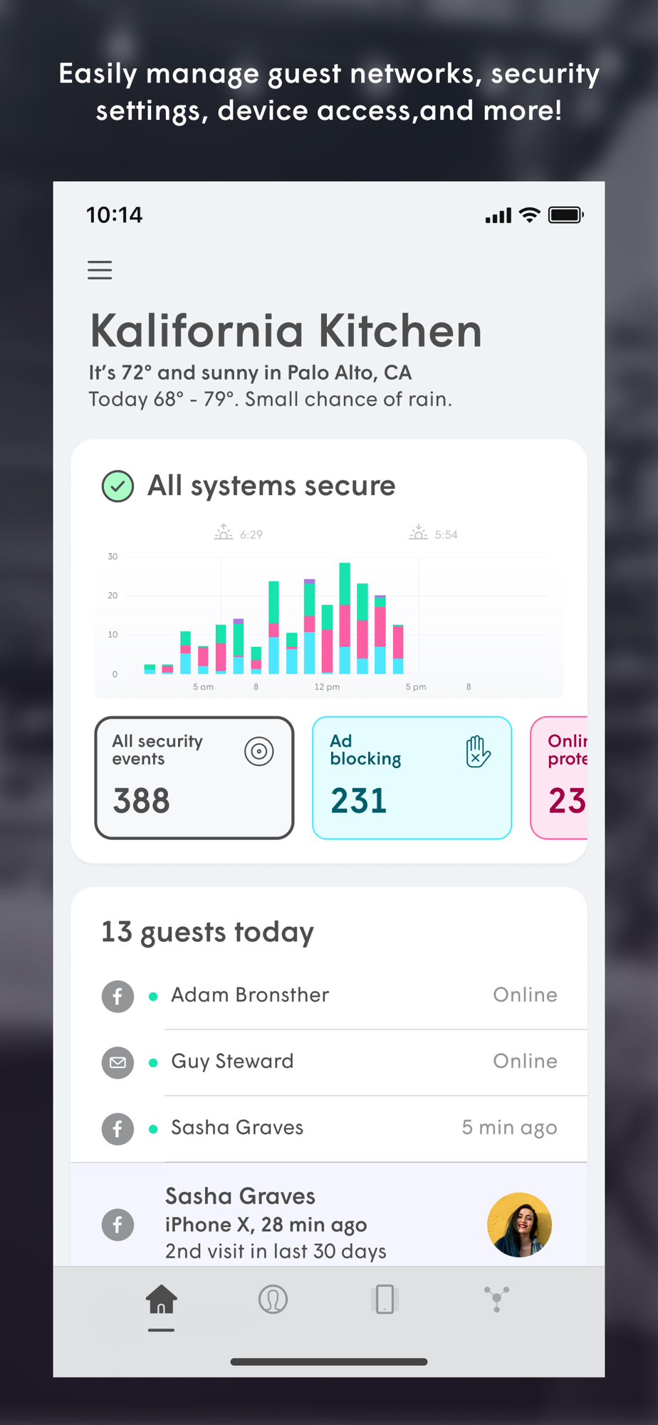 Easily manage guest networks, security settings, device access, and more. See which devices are accessing the internet, how much they're uploading or downloading, and block or unblock specific devices if necessary.