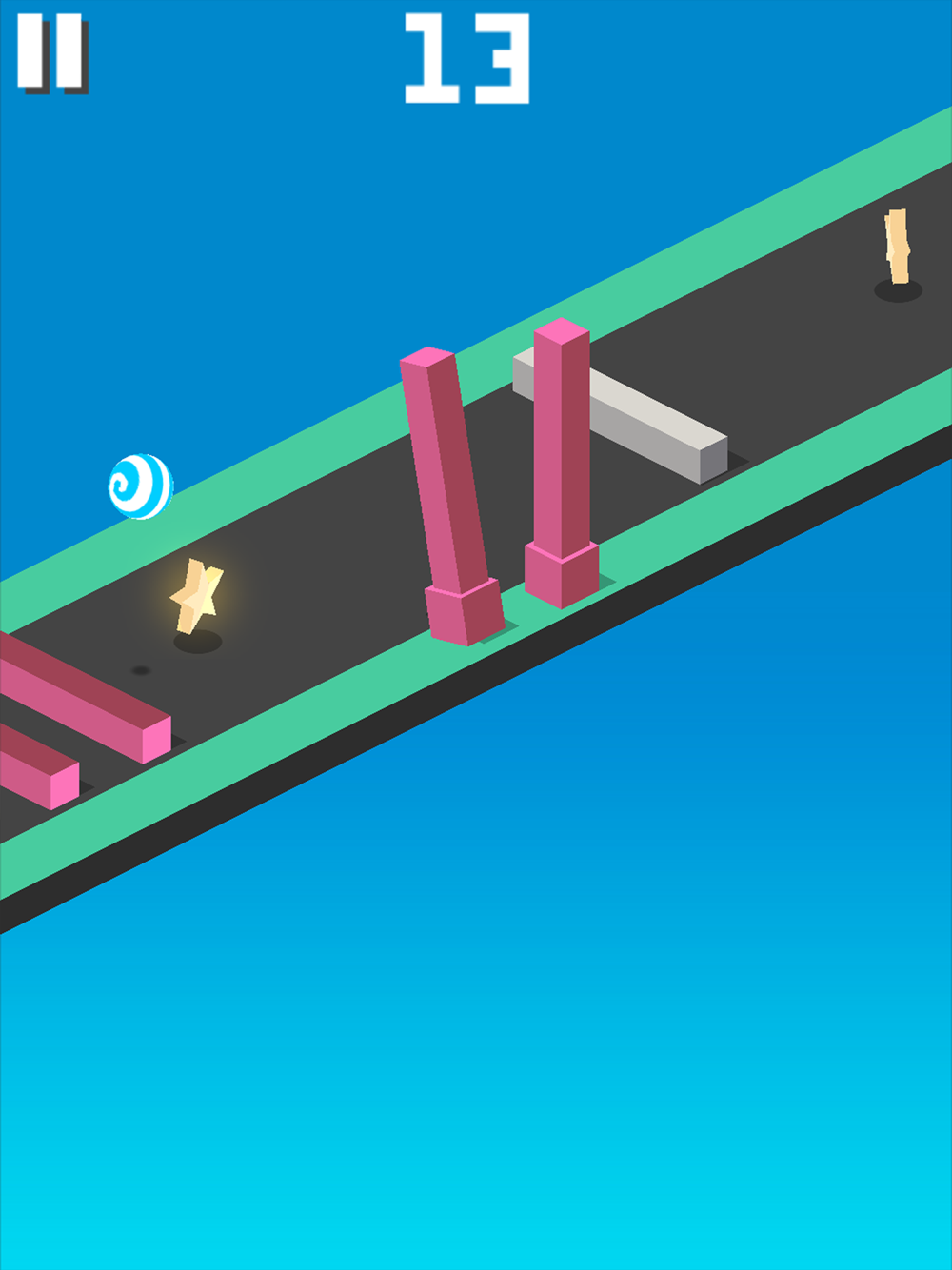 Touch and hold to slow down time. Avoid the obstacles and collect start to unlock cool characters!
