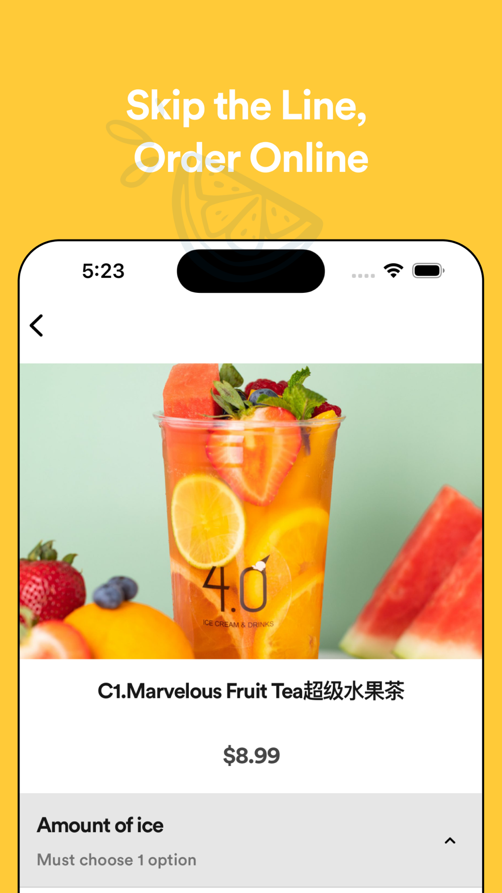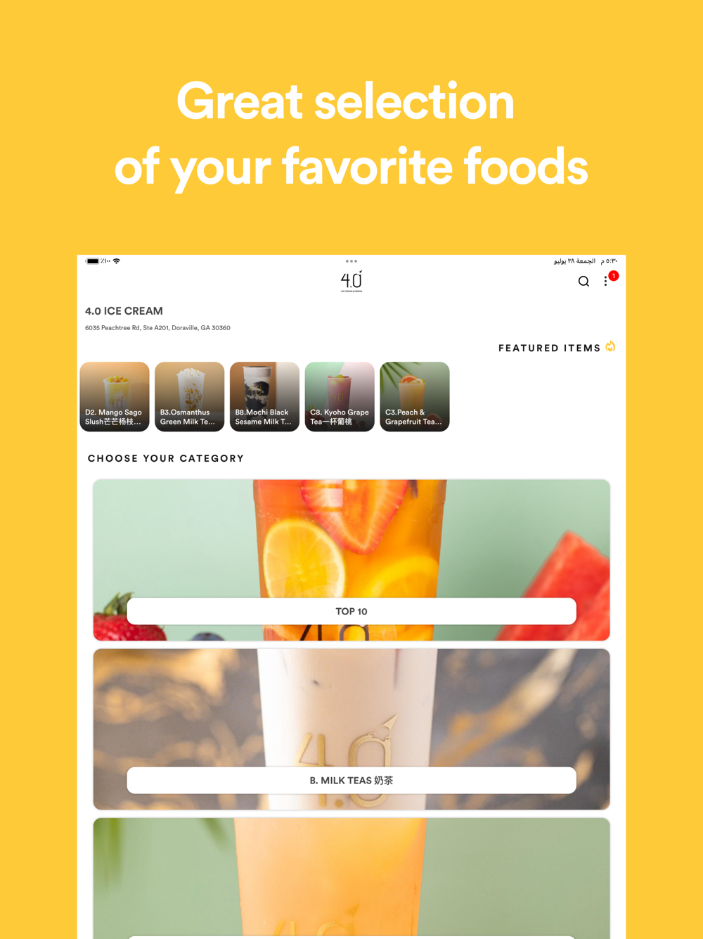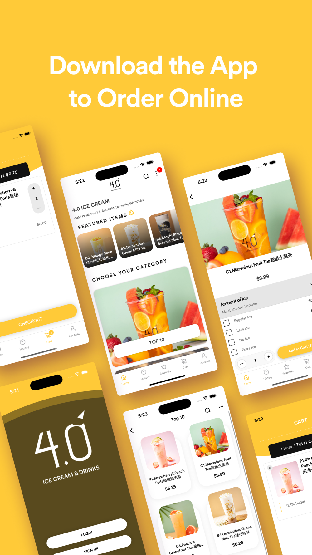 Order Online with The 4.0 ICE CREAM & DRINKS App.
