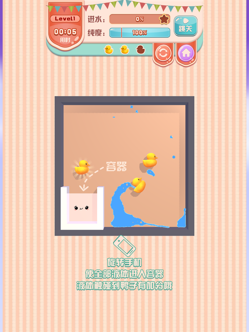 It is necessary to collect all the liquid into the container through numerous obstacles,