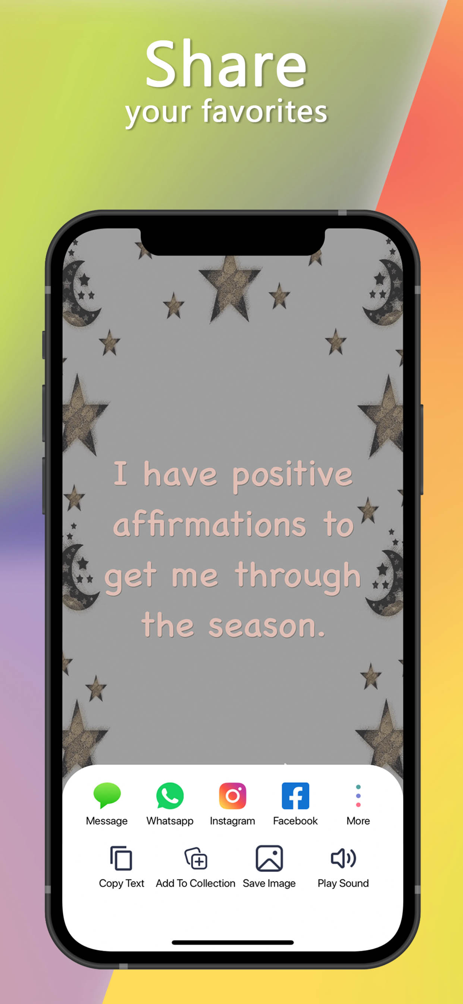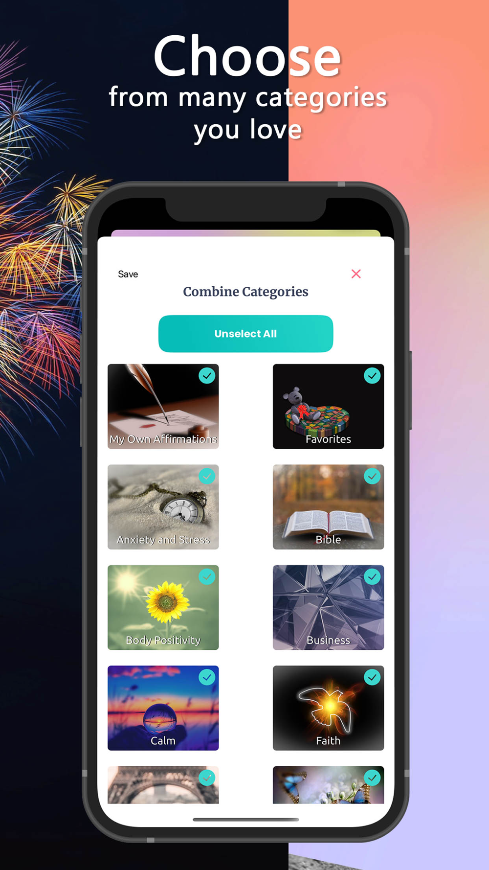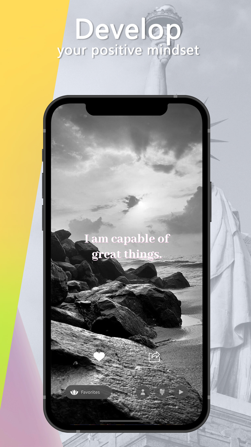 Choose from the app's many categories and tons of affirmations - updated frequently. Set up your daily reminders and you'll receive affirmations throughout the day, to suit your lifestyle. Customize the design of the affirmations, share an affirmation with your friends, or use the image on your social media, or as wallpaper... the choice is yours.