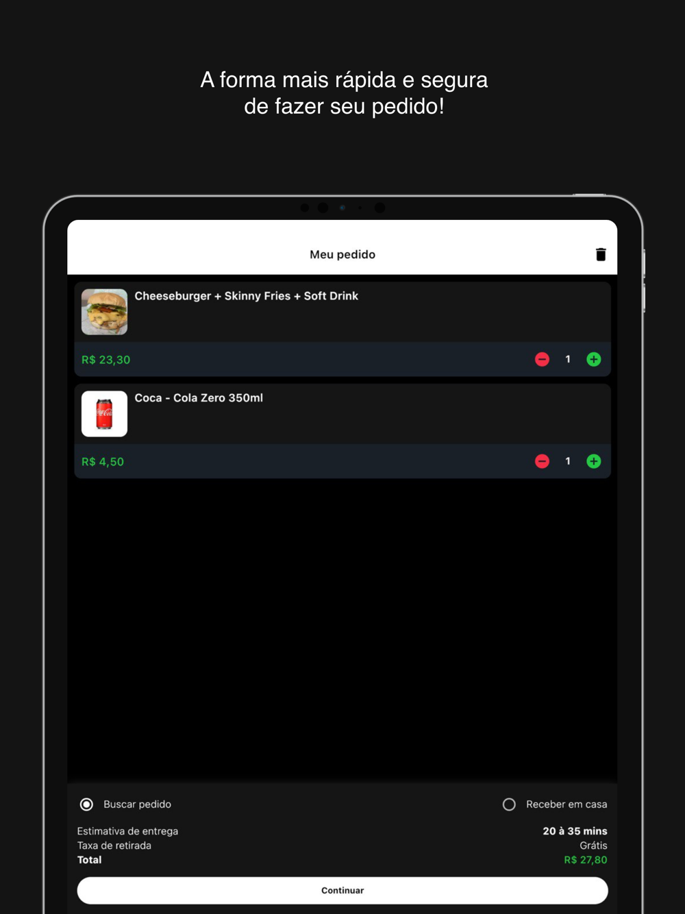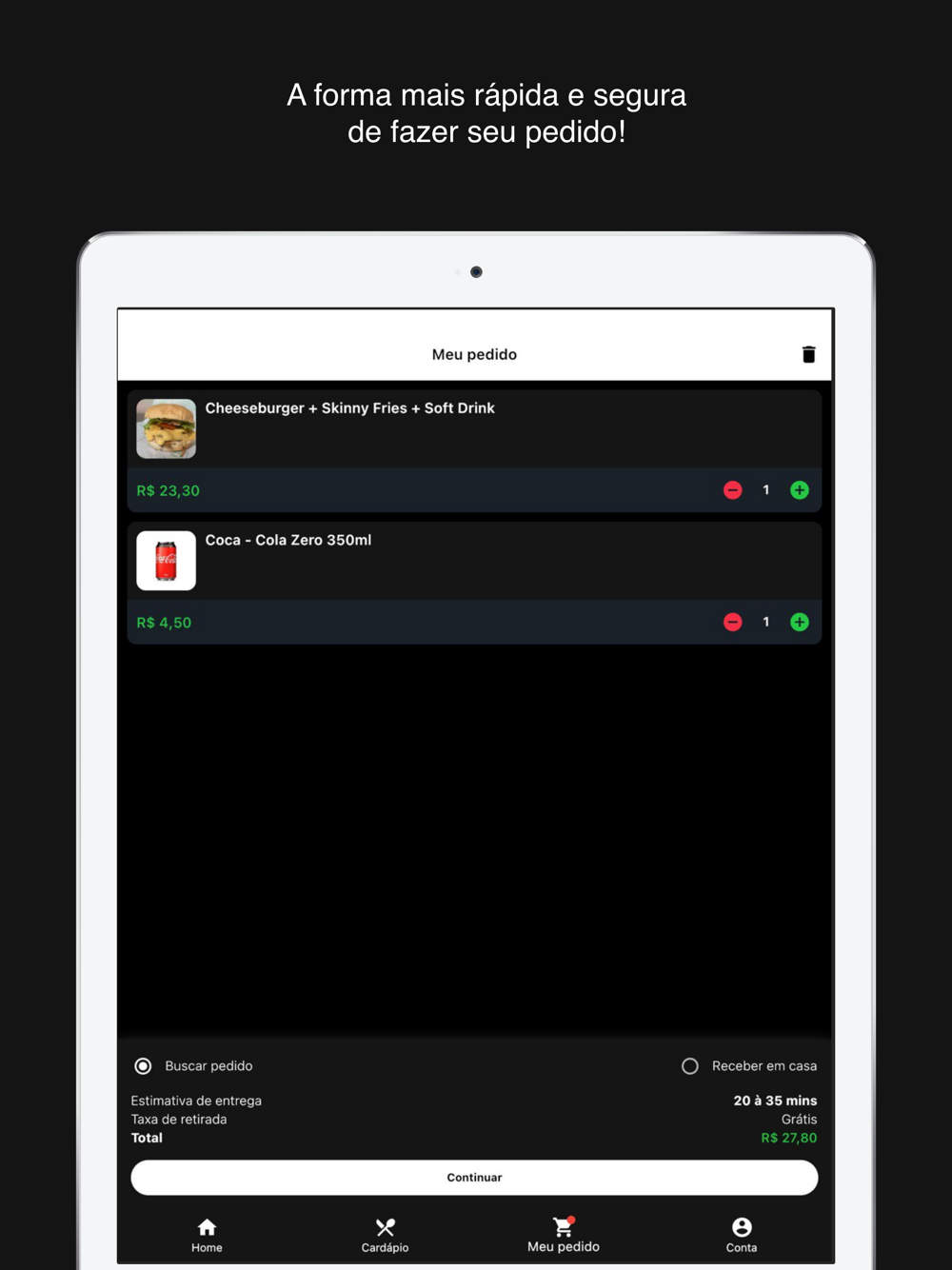 No app, você encontra de forma rápida o cardápio completo e ainda pode utilizar a ferramenta de busca para localizar diretamente os produtos que você deseja.