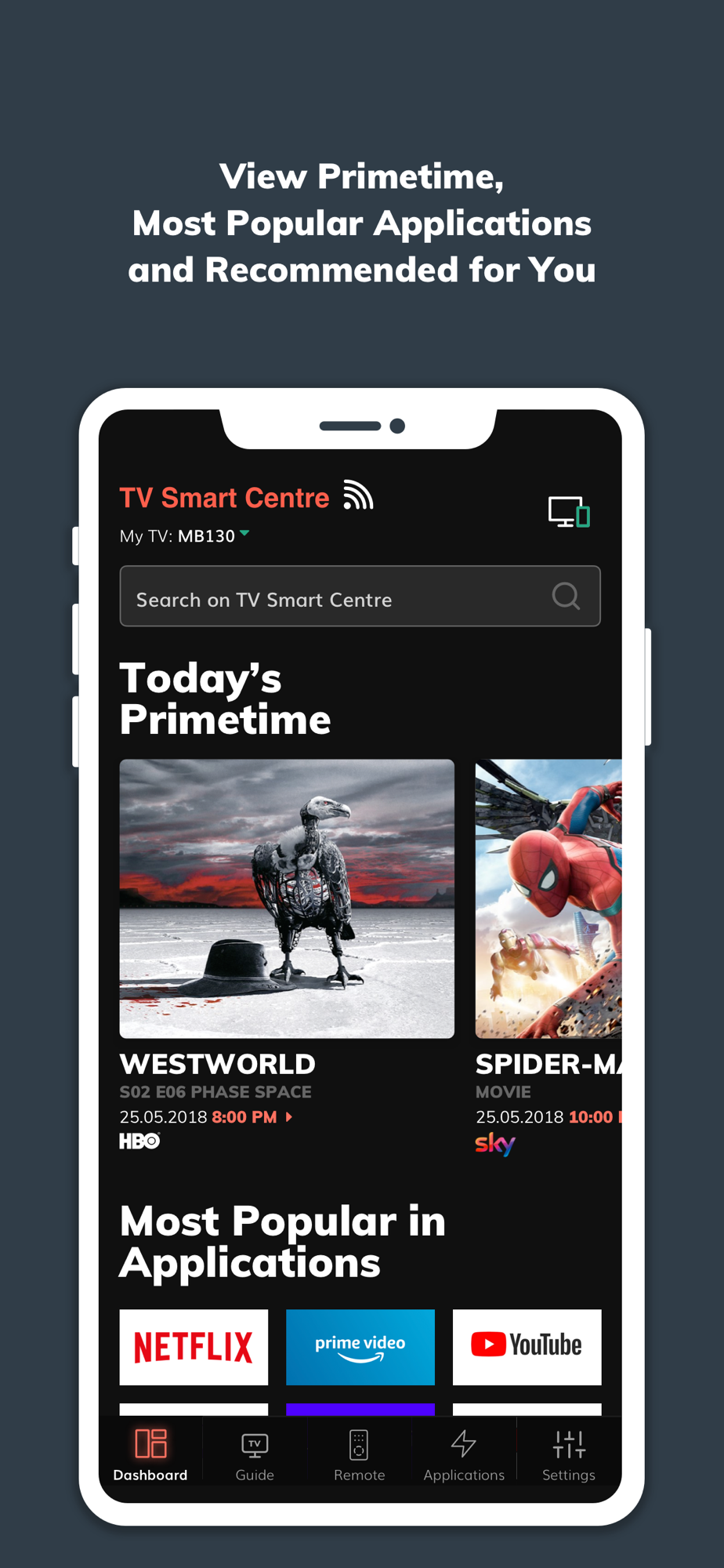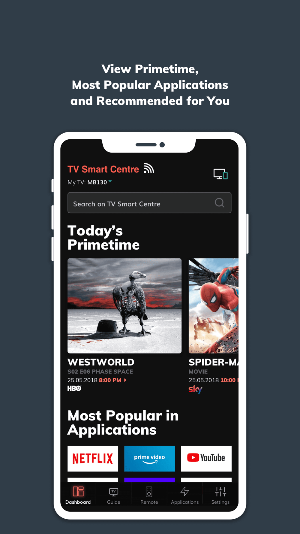 • View broadcasts on TV, prime time info, popular applications and recommended contents for you.