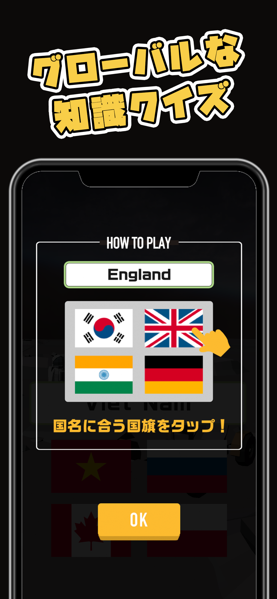 かんたん操作のゲームで楽しく国旗を覚えられます。