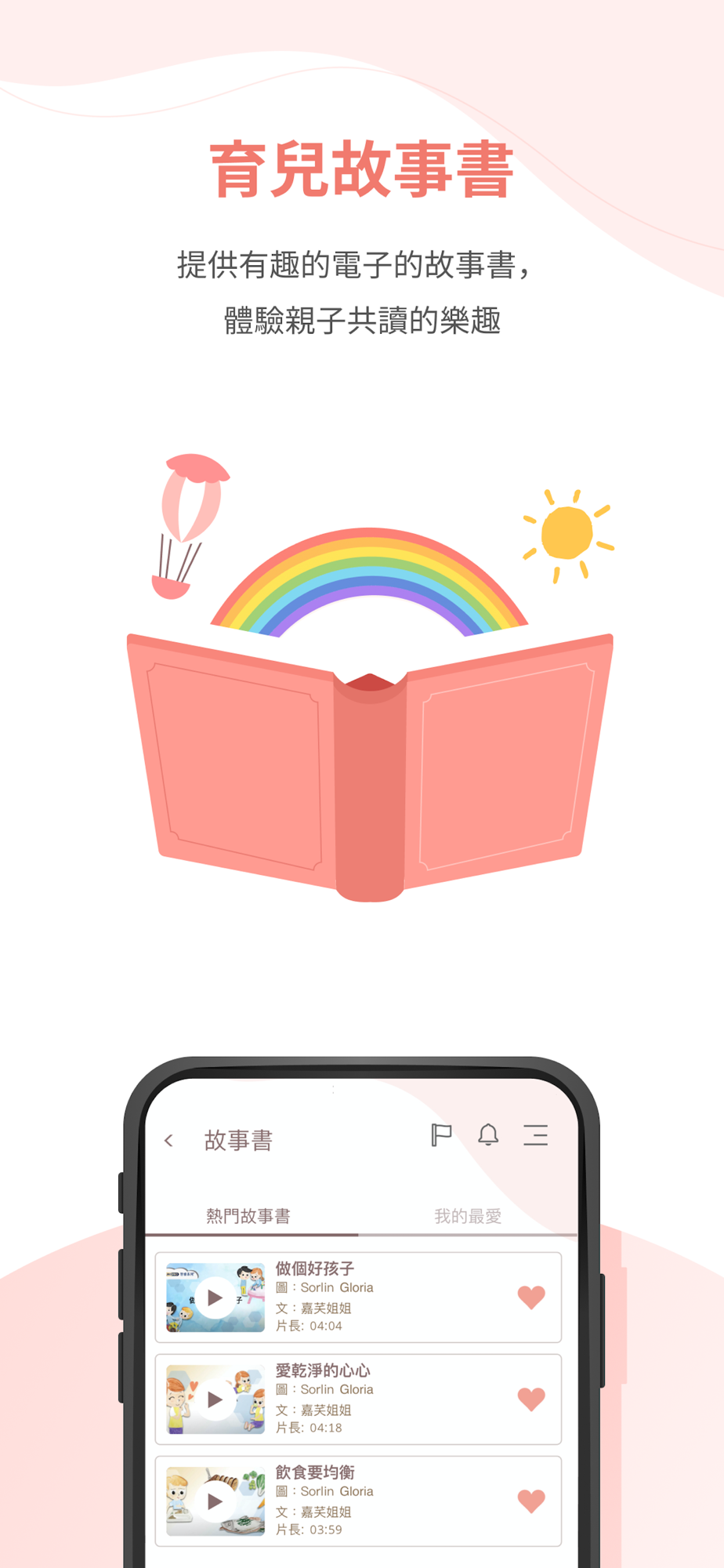 【育兒故事書】提供有趣的電子的故事書,體驗親子共讀的樂趣。