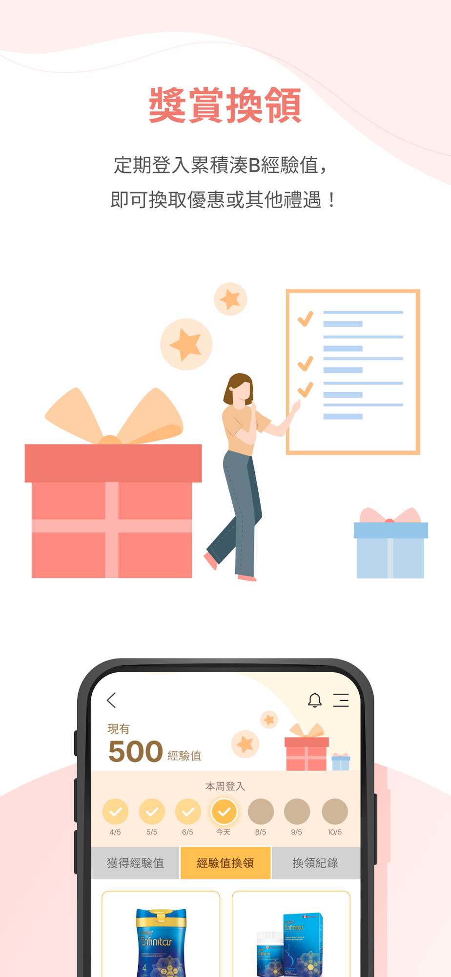 定期登入累積湊B經驗值,即可換取優惠或其他禮遇!
