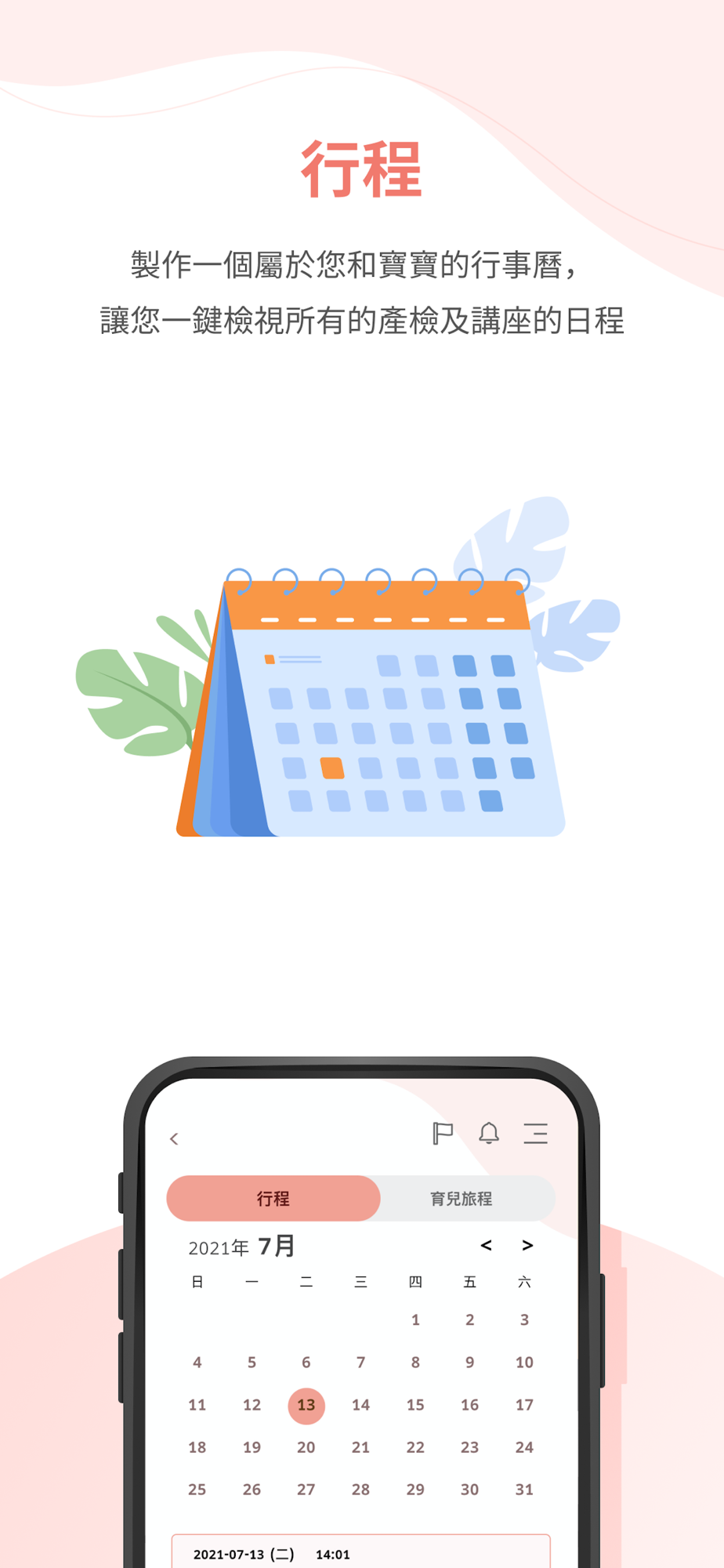 【行程】製作一個屬於您和寶寶的行事曆,讓您一鍵檢視所有的產檢及講座的日程。