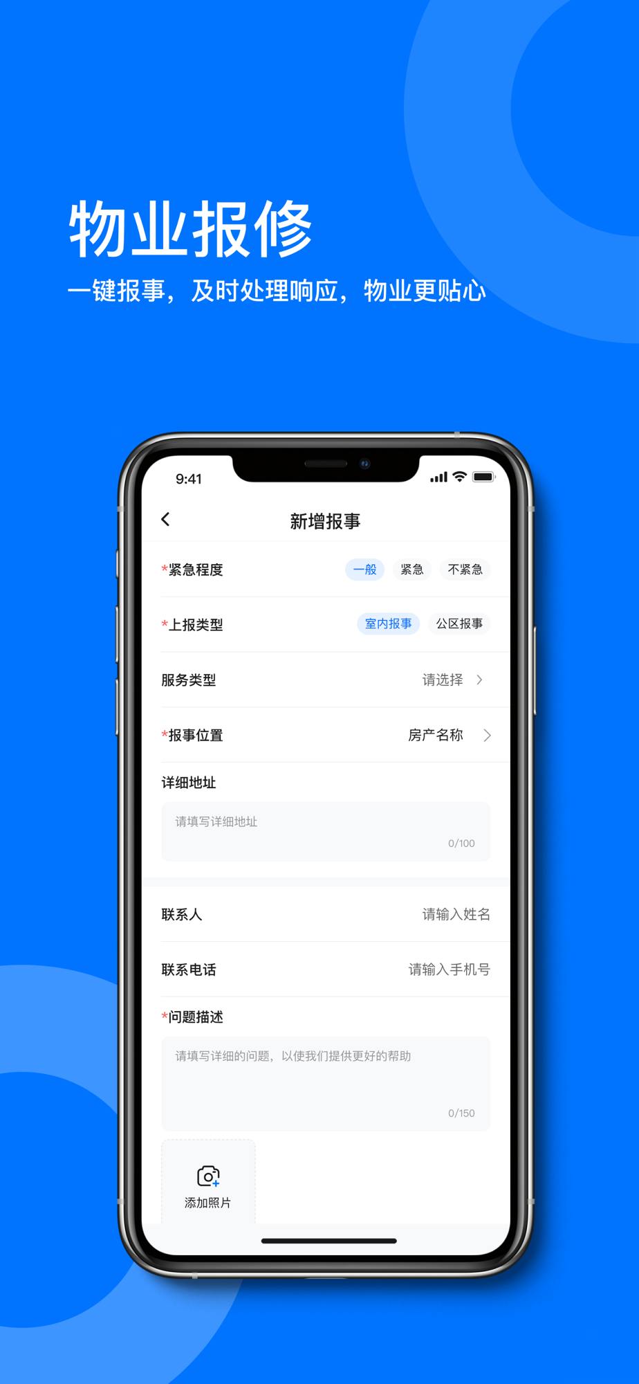 面向个人用户提供智慧温馨生活的移动门户。集成住宅业态建筑空间内的公区设备和家居智能硬件,为用户打造极致物联的七彩生活。