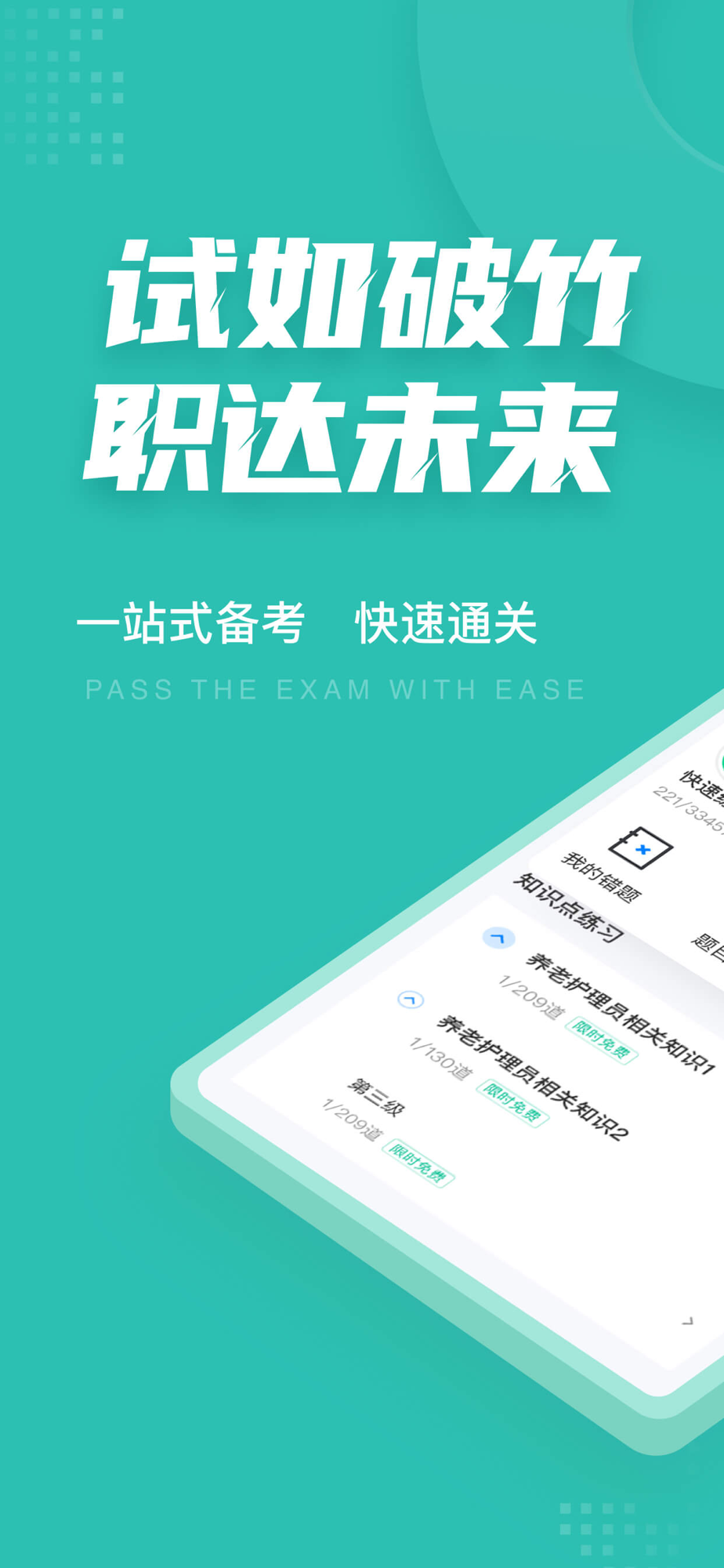 养老护理员题库内含考点练习,全国通用卷以及地区卷模拟练习,以及按照固定考试比重的随机式的抽题的真题考场,成绩单实时记录考试数据,一点一滴的反馈考生近期学习状态以及自我正确率的提升,大大的给予考生通过考试的信心。