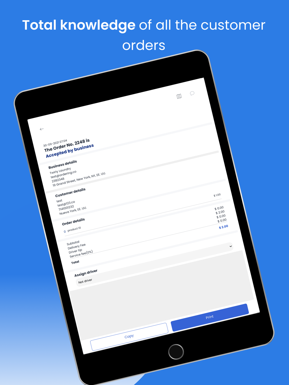After the User orders on your website or native apps, the business owner will receive the order directly on his phone or tablet.