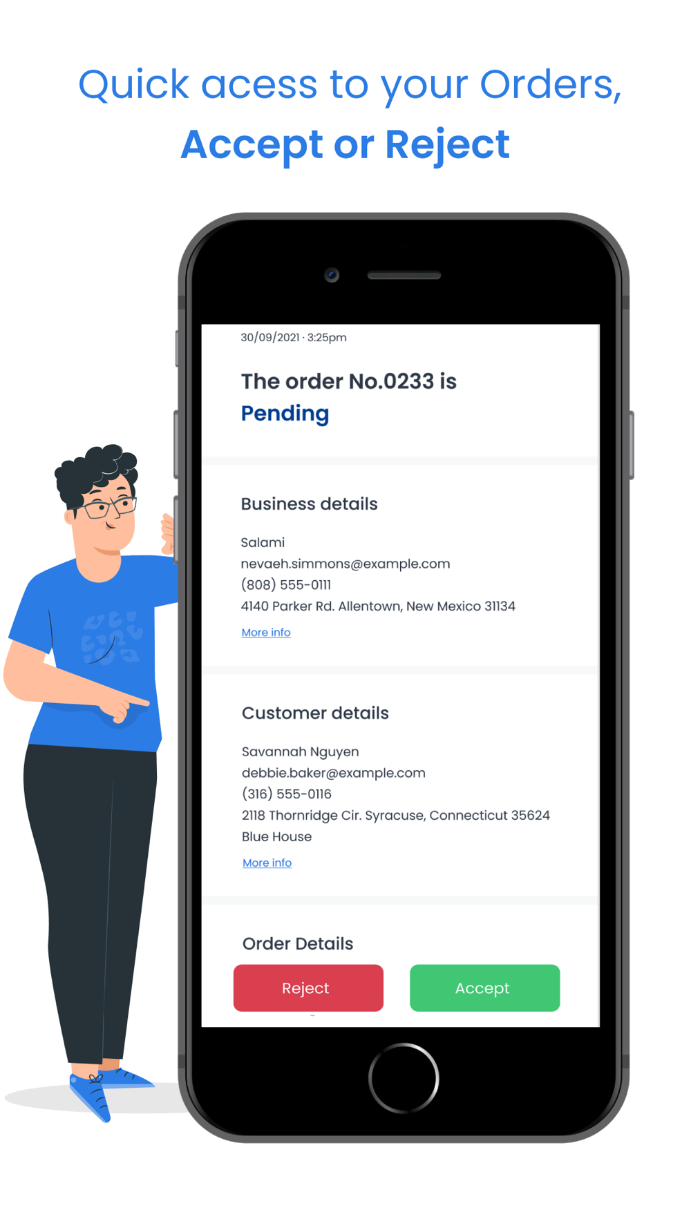 - Affiliated businesses Accept or Reject new orders: confirmation is then sent to your customer in an email