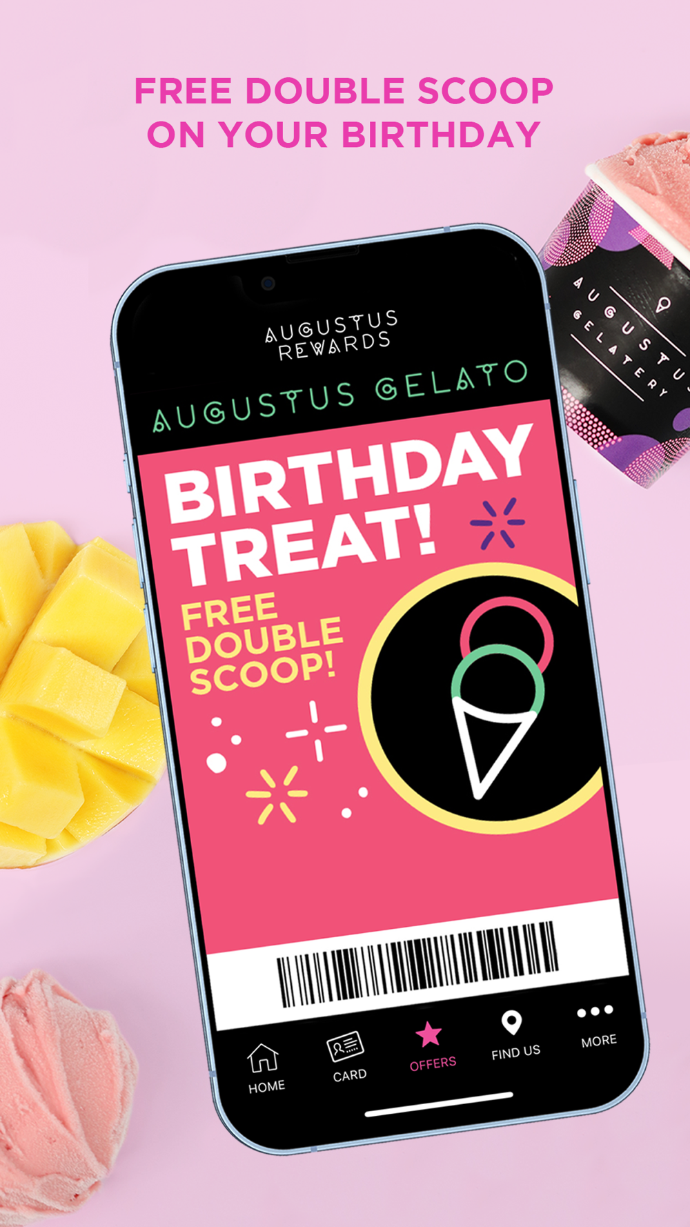 The Augustus Rewards app is finally here, ready for you to start earning delicious rewards. Simply scan your phone when you buy your gelato, easy!