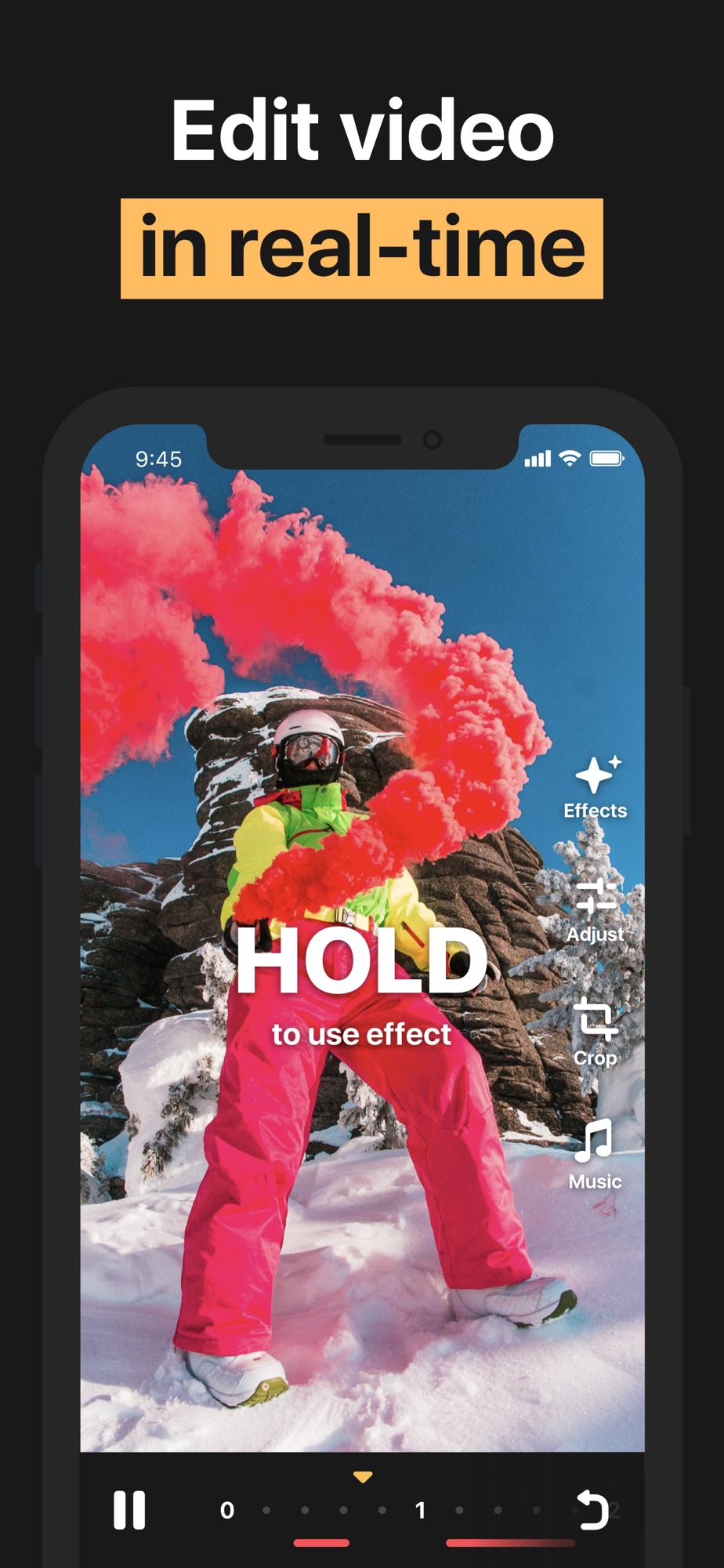 You will find making masterpieces has never been easier than now. No matter what you are, celebrity on media space or casual user, various video effects are awaiting your discovery. Motion, clone, cartoon, sketch, glitch and many other effects is very simple to use, just real-time apply and watch the result. REEL makes it easy to edit your video as you wish!