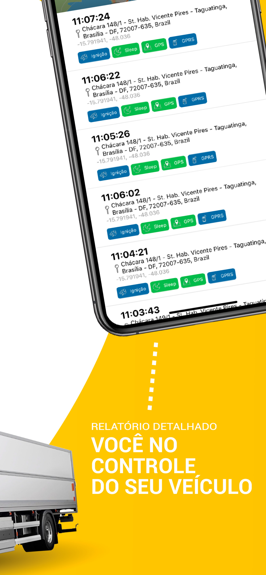 Aplicativo Mobile da map7 rastreadores, que permite a localização dos veículos em tempo real, além dos últimos registros, com endereço, data e hora e o trajeto percorrido pelo veiculo.