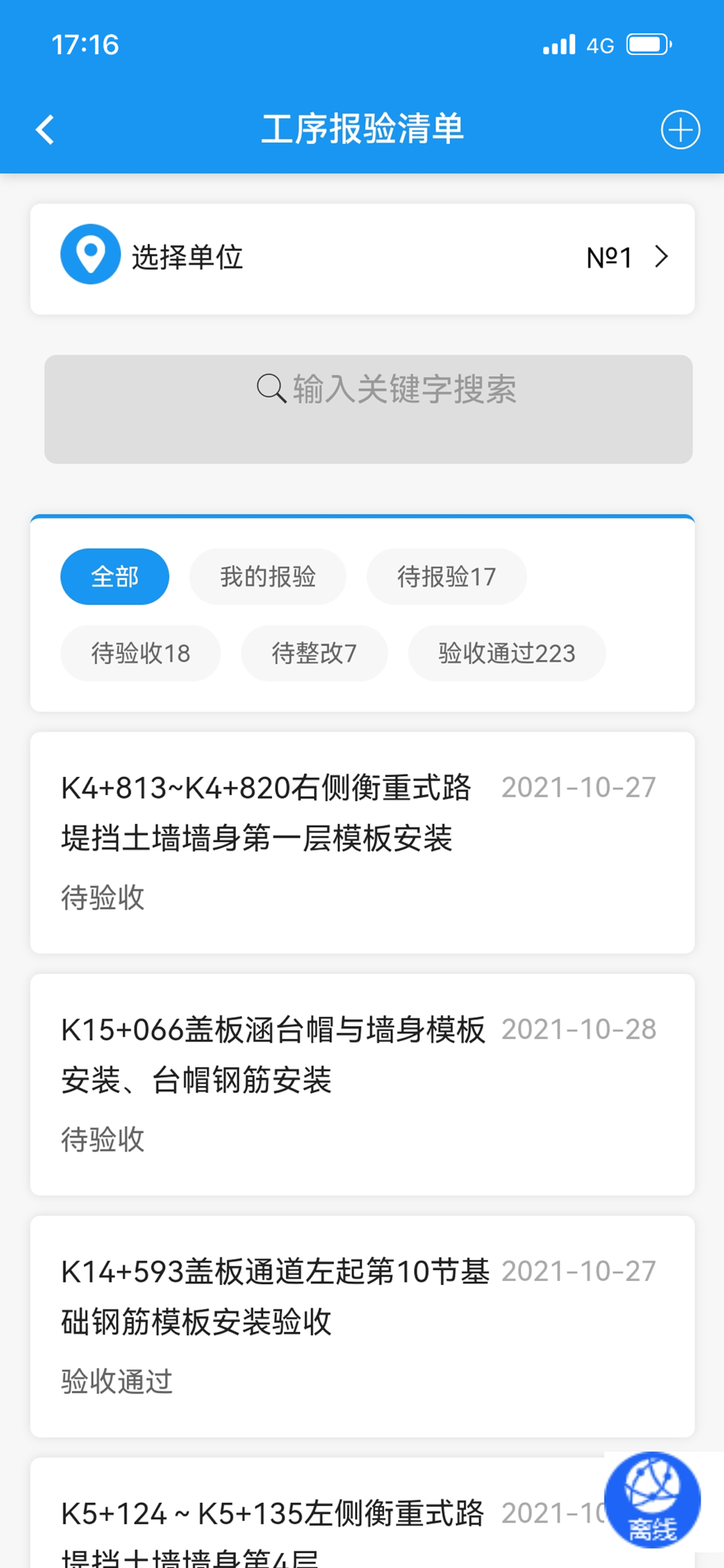 4.离线缓存报验:可以随时随地进行报验工作,在无网络的施工现场也可进行报验填报。