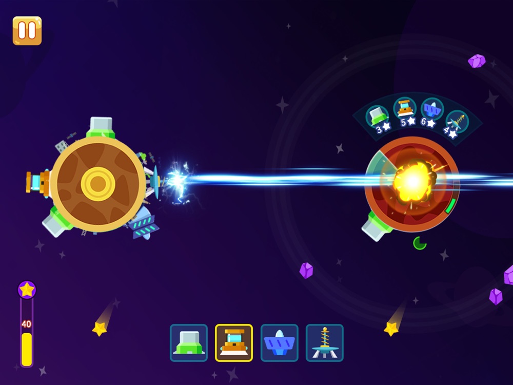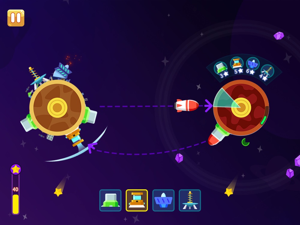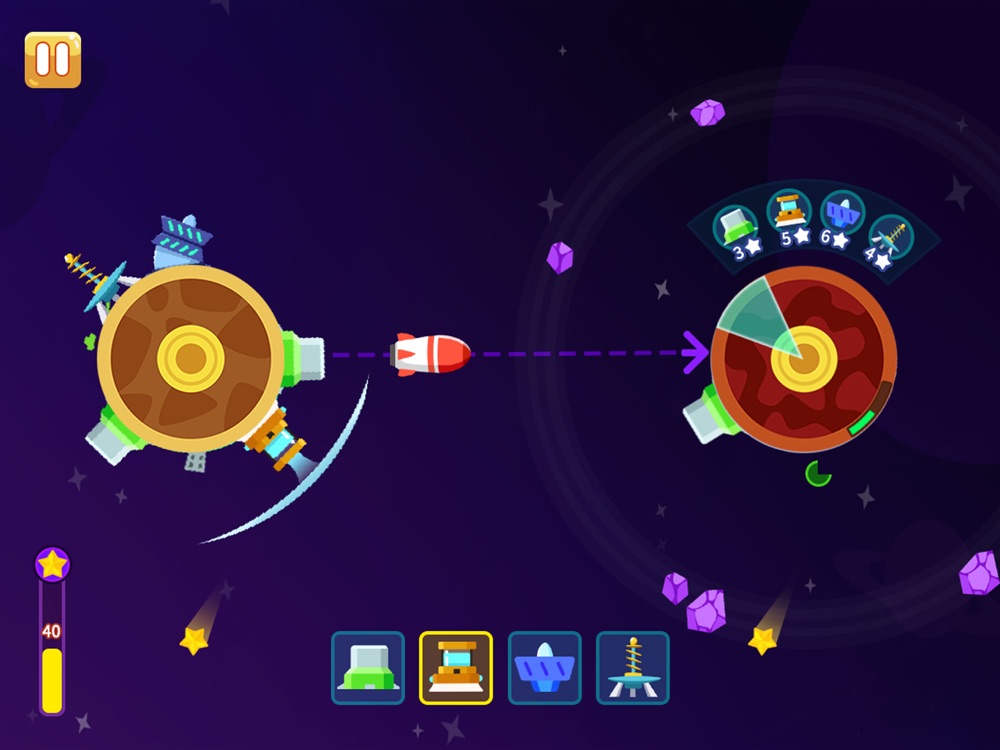 Use the land on your own planet to build forts to bomb other planets until they are destroyed.