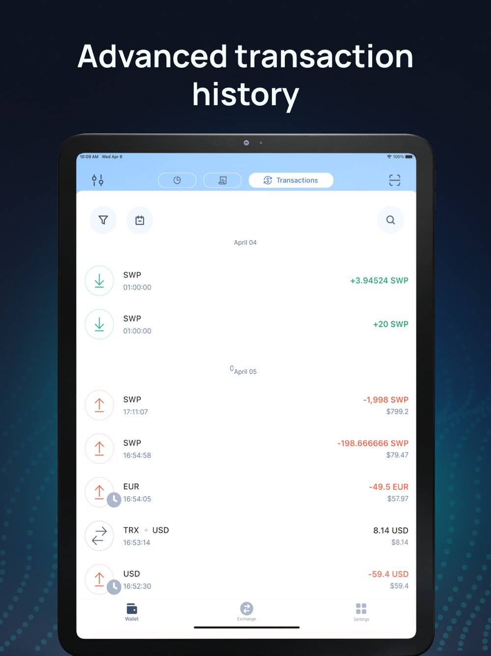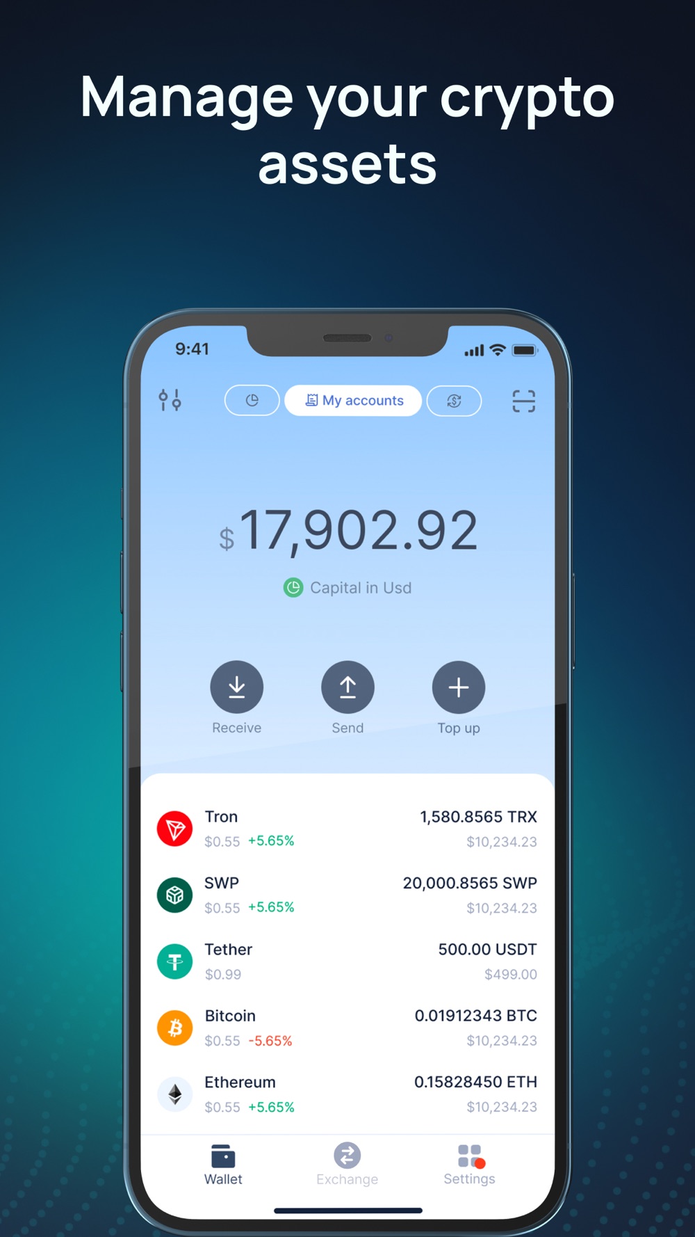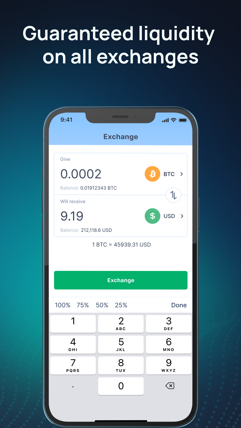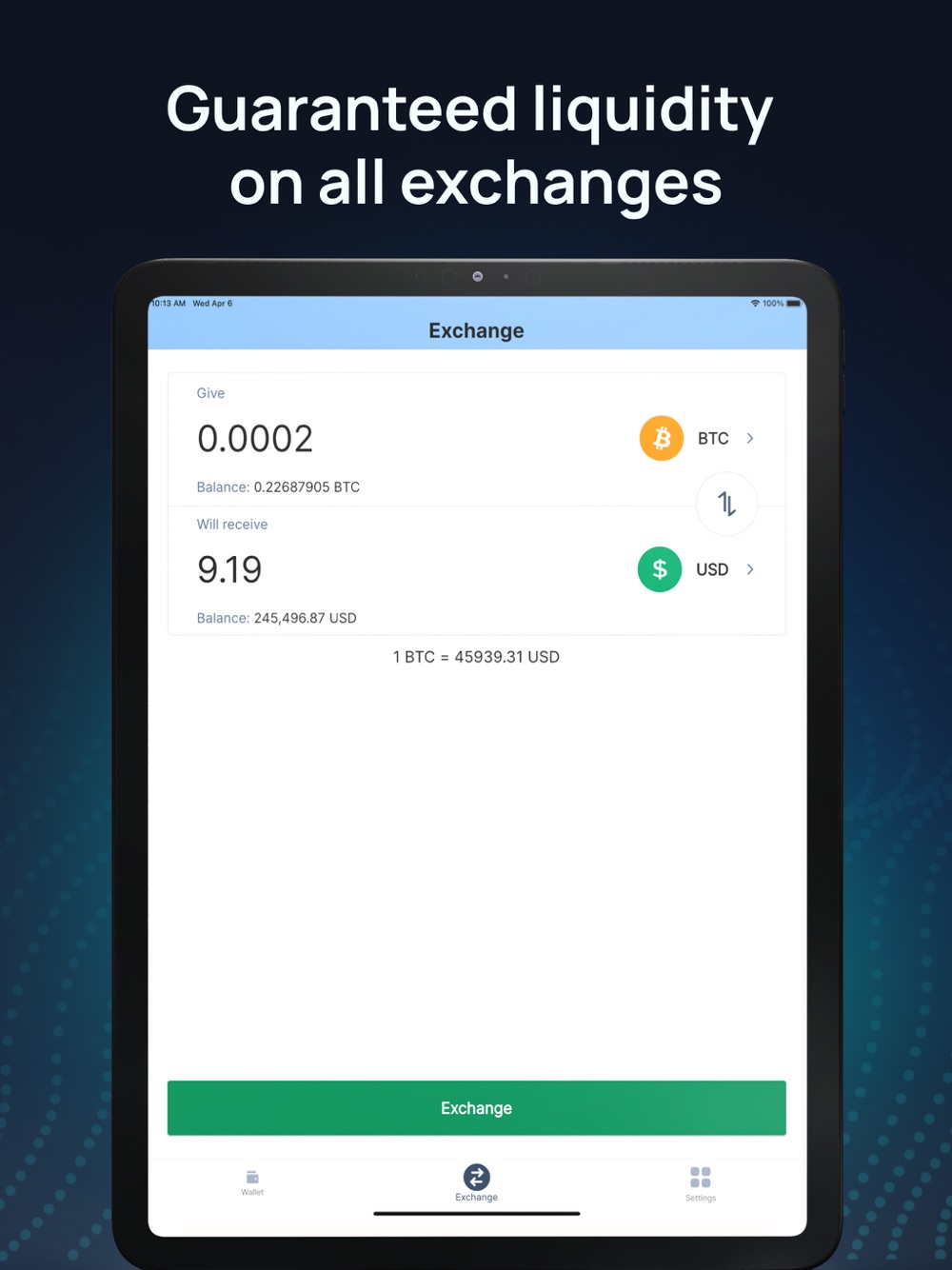 With the S-Wallet app, you can securely store crypto and fiat assets, exchange currencies, withdraw funds 24/7, buy and sell currencies in a few clicks with guaranteed liquidity, anywhere in the world at any time.