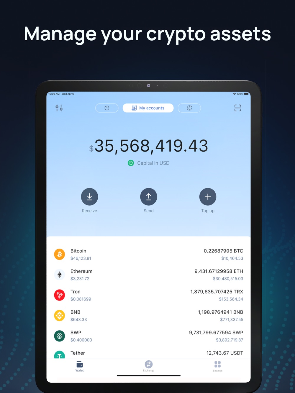 S-Wallet is a multi-currency cryptocurrency wallet that allows each user to store crypto and fiat assets in a single secure vault. We are trusted by tens of thousands of users, whose geography extends to more than 100 countries around the world.