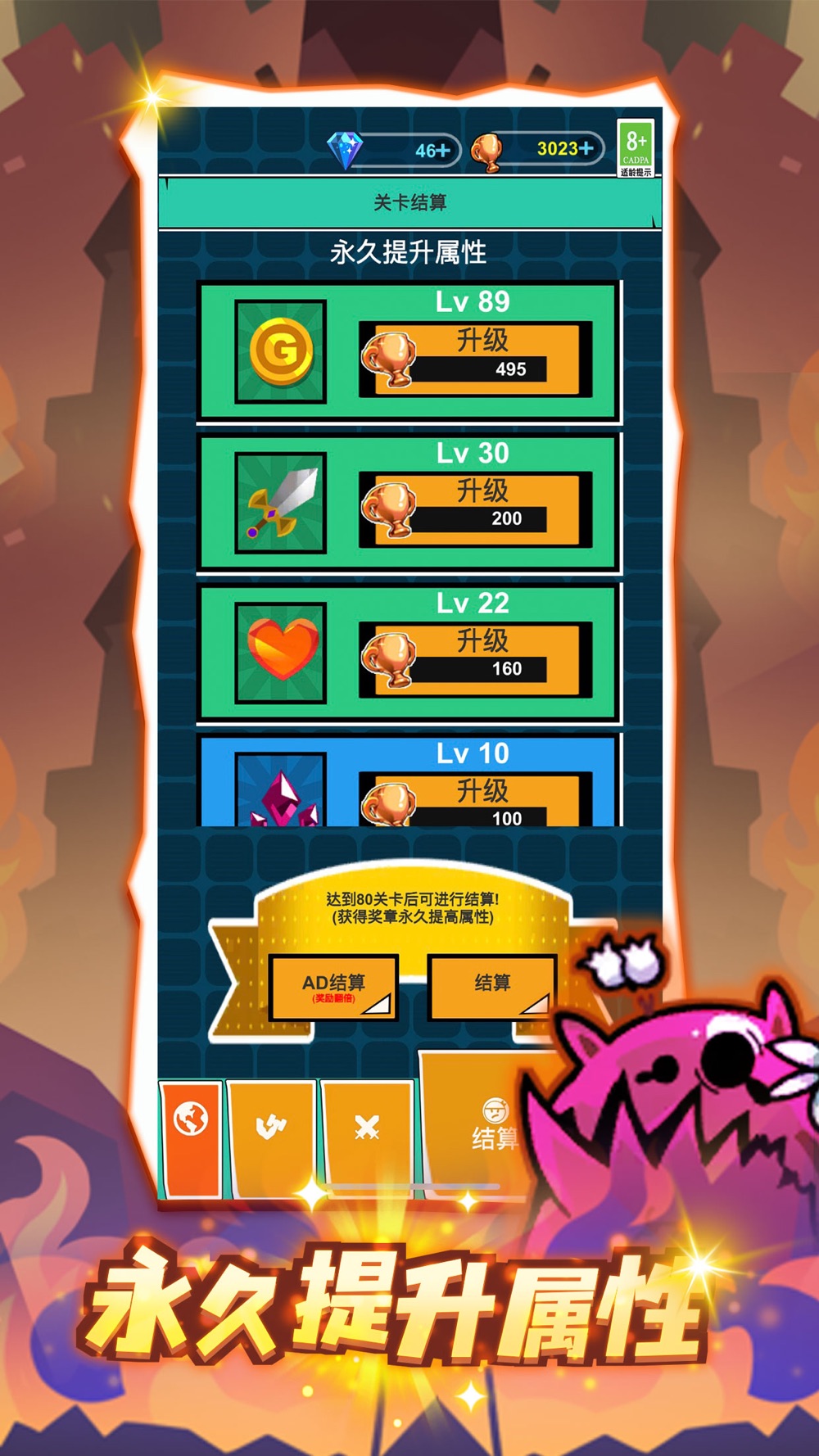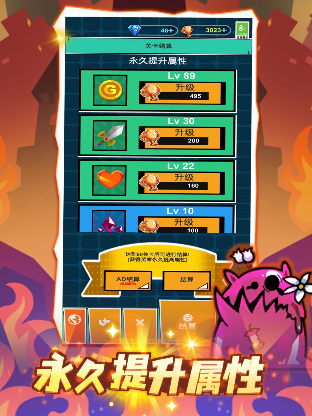 「」关卡重置 ,达到指定关卡即可结算重开游戏,体验割草快感