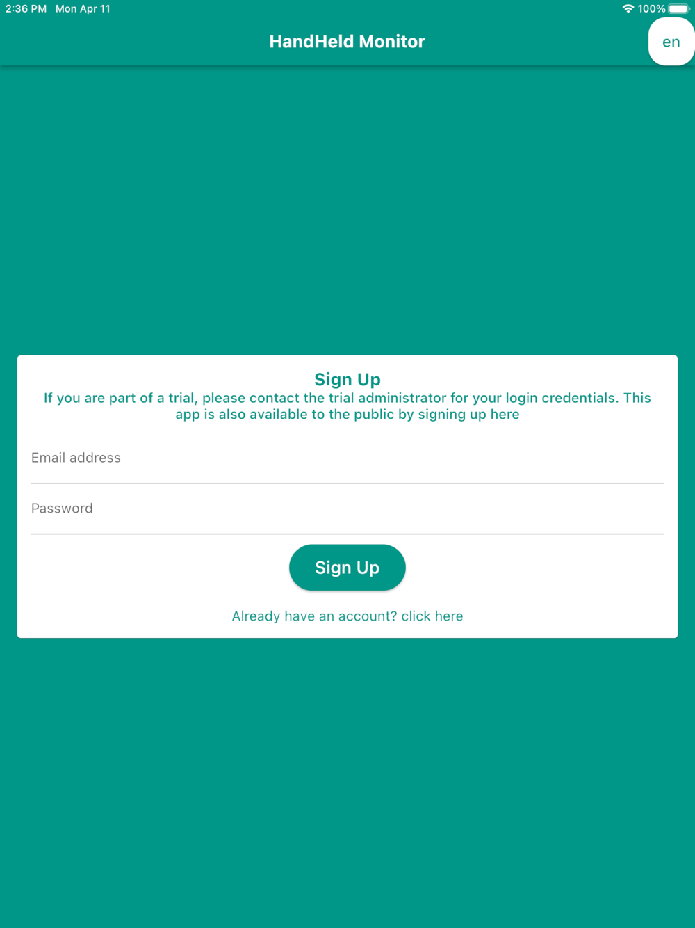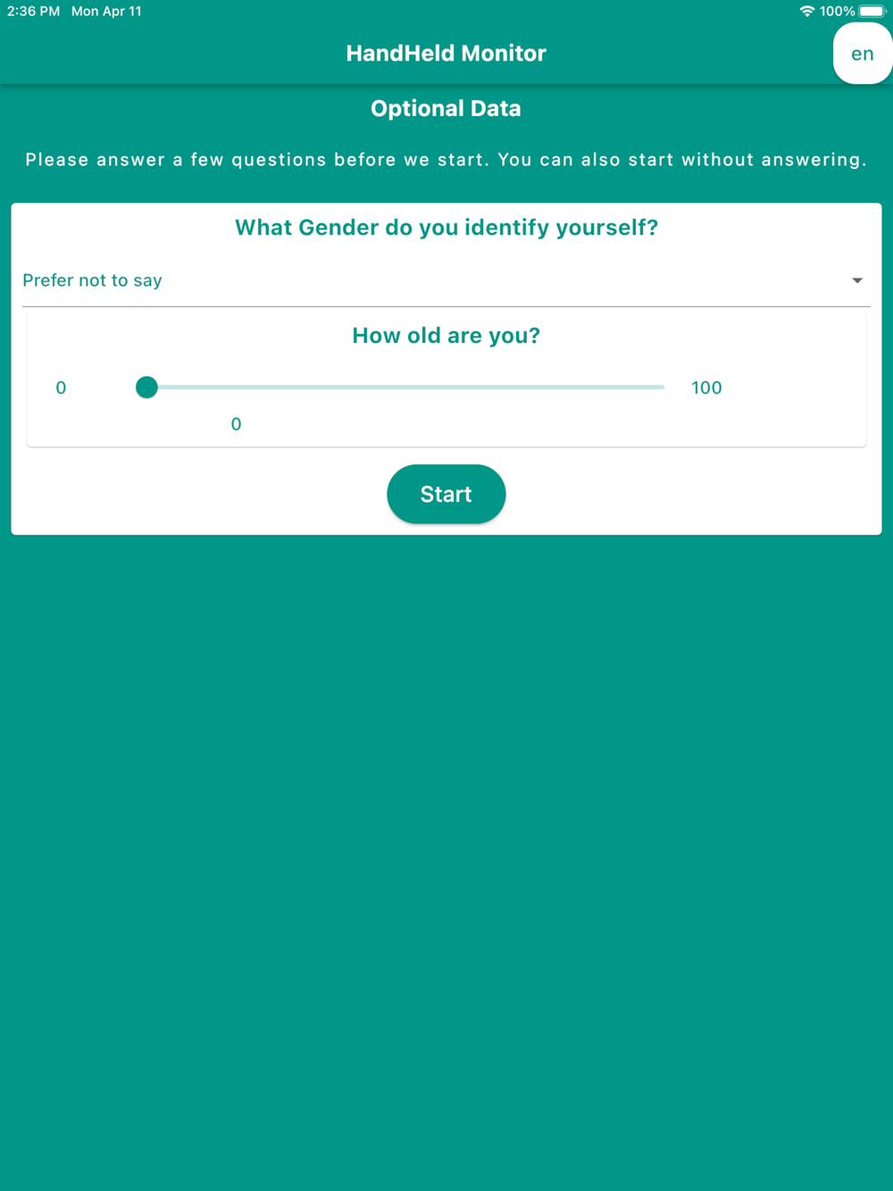 HandHeld Monitor data collected are your daily responses to the survey questions, and optionally your age and gender. No other personal identifying information is collected. The HandHeld Monitor app does not collect activity tracker data. Your email address is used for account management and to index your collected data. The collected data, without your email, is shared with the McGill University research team.