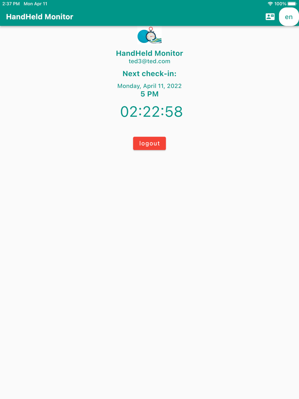 The objective of HandHeld Monitor is to help you become aware of your emotional state and activities over time.. Checkin once a day at 5PM.