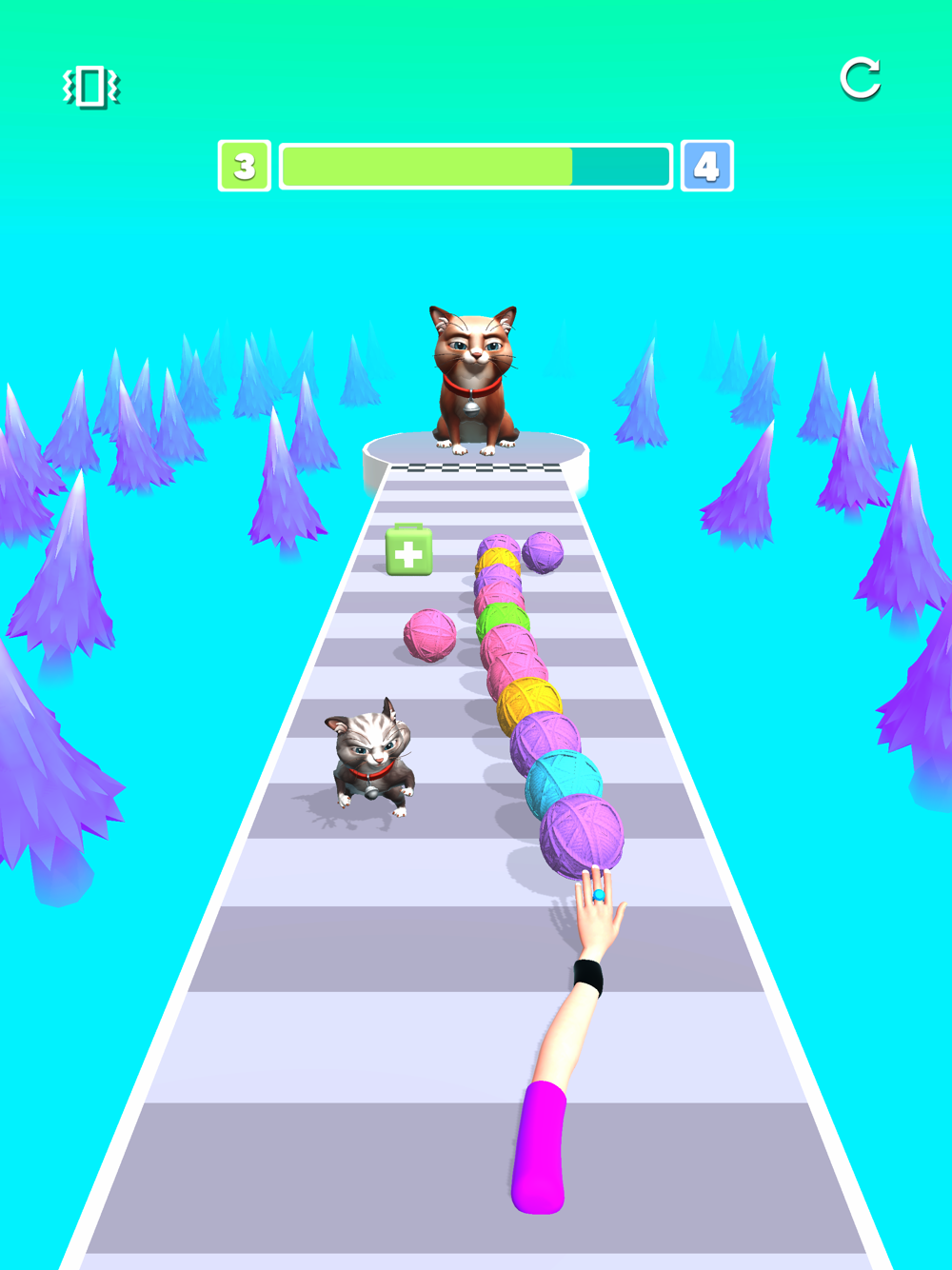 The world's cutest cat is waiting for a ball of yarn to play. Watch out for angry cats on the road as you collect the balls. Their desire is not to play but to pat you. Try to bring your cat to the ball of yarn as much as possible while keeping your arm from being scratched.