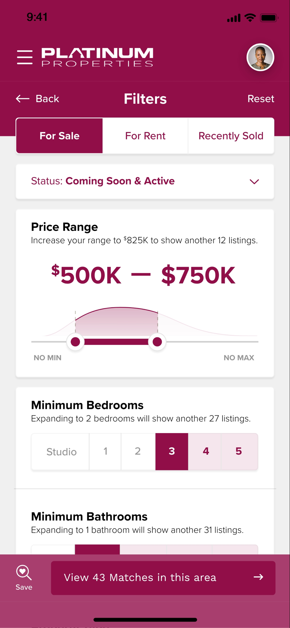 With the Platinum Properties Homeownership app, you have access to all for sale and for rent MLS listings. Use the app anytime, anywhere to search for homes for sale or for rent around you using the GPS search or find homes based on address, city, ZIP Code or neighborhood. Plus, create your own custom search areas to target the exact place you want to be.