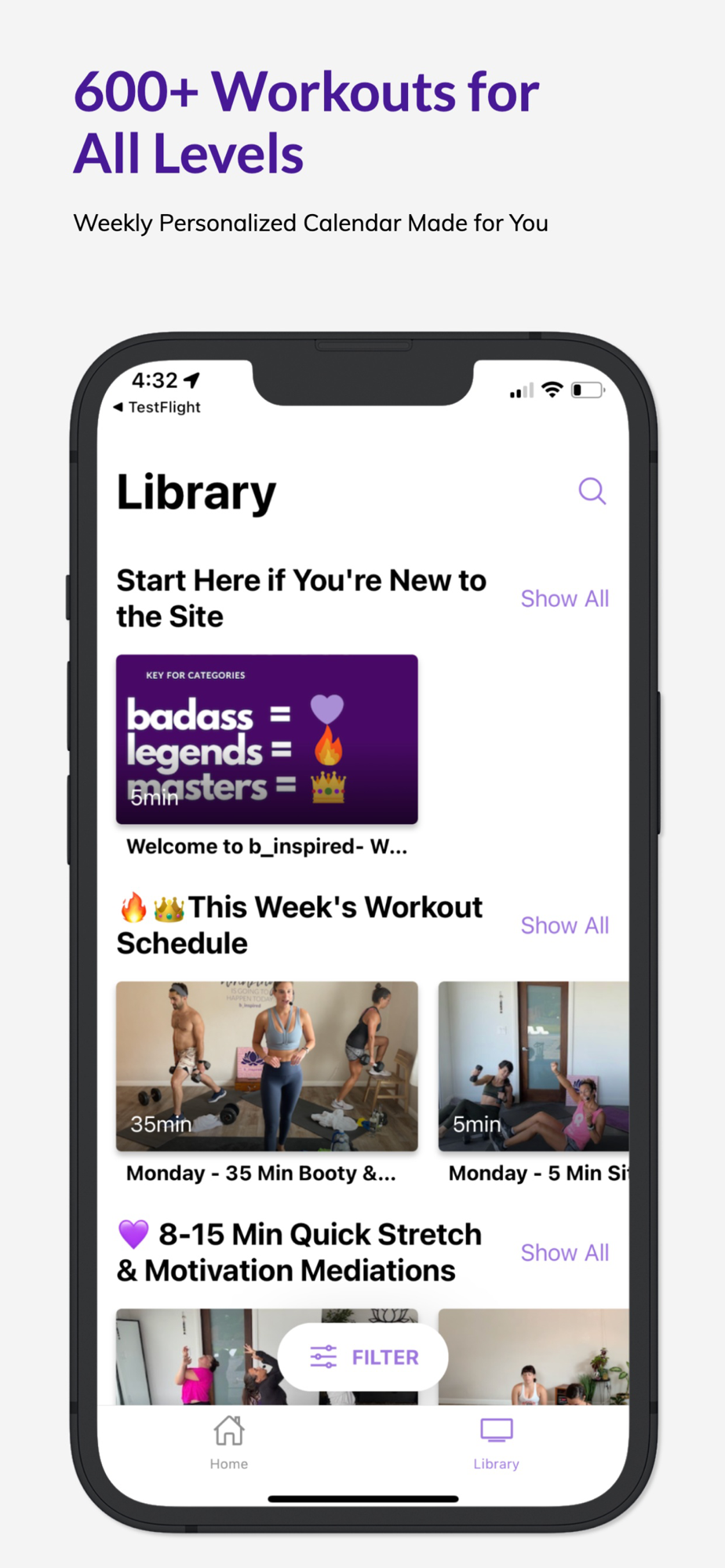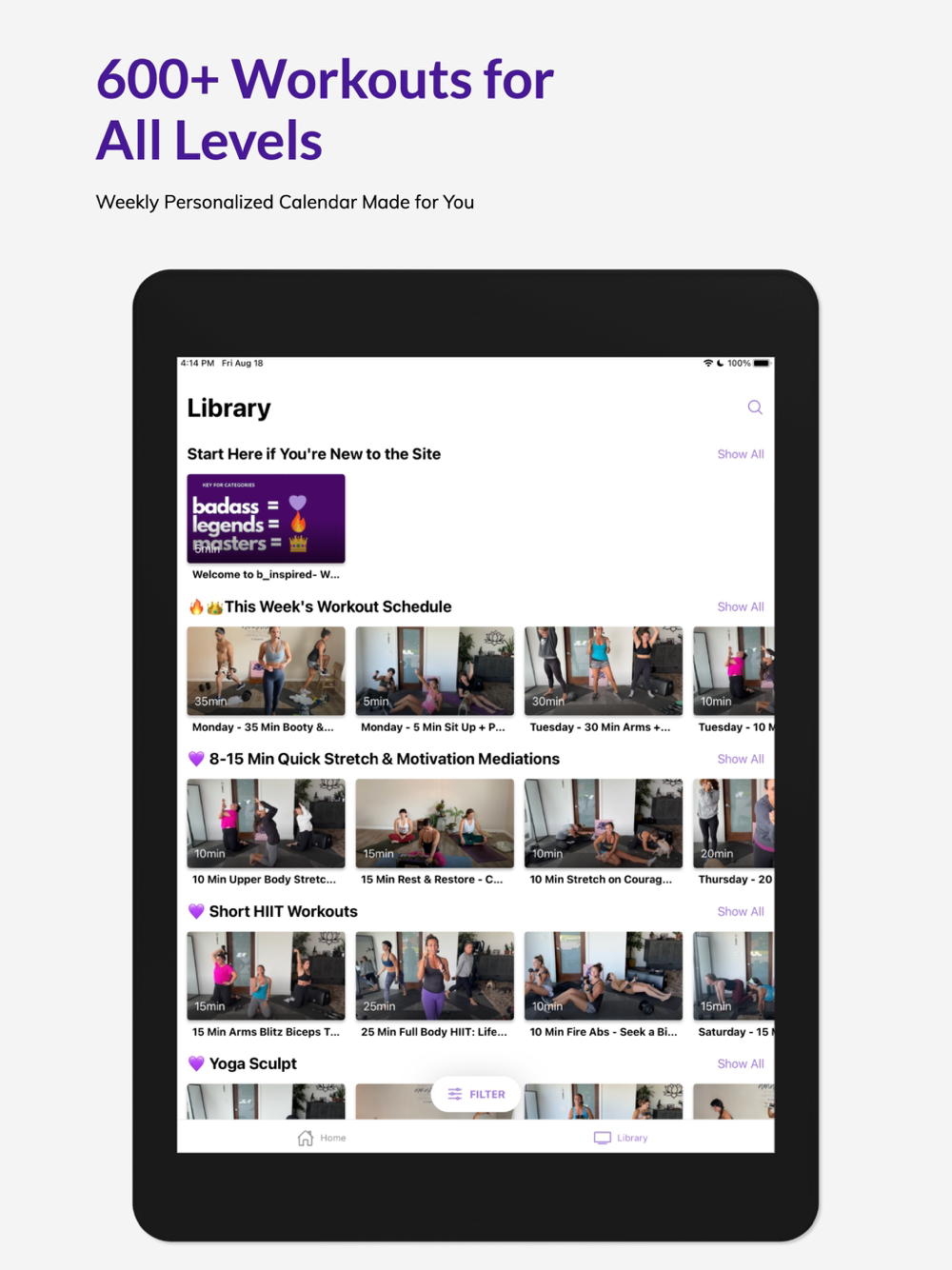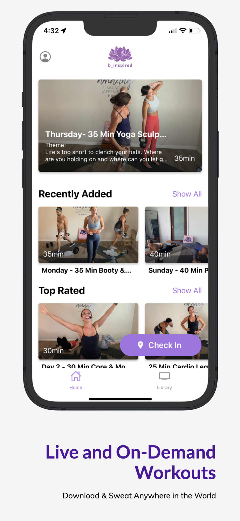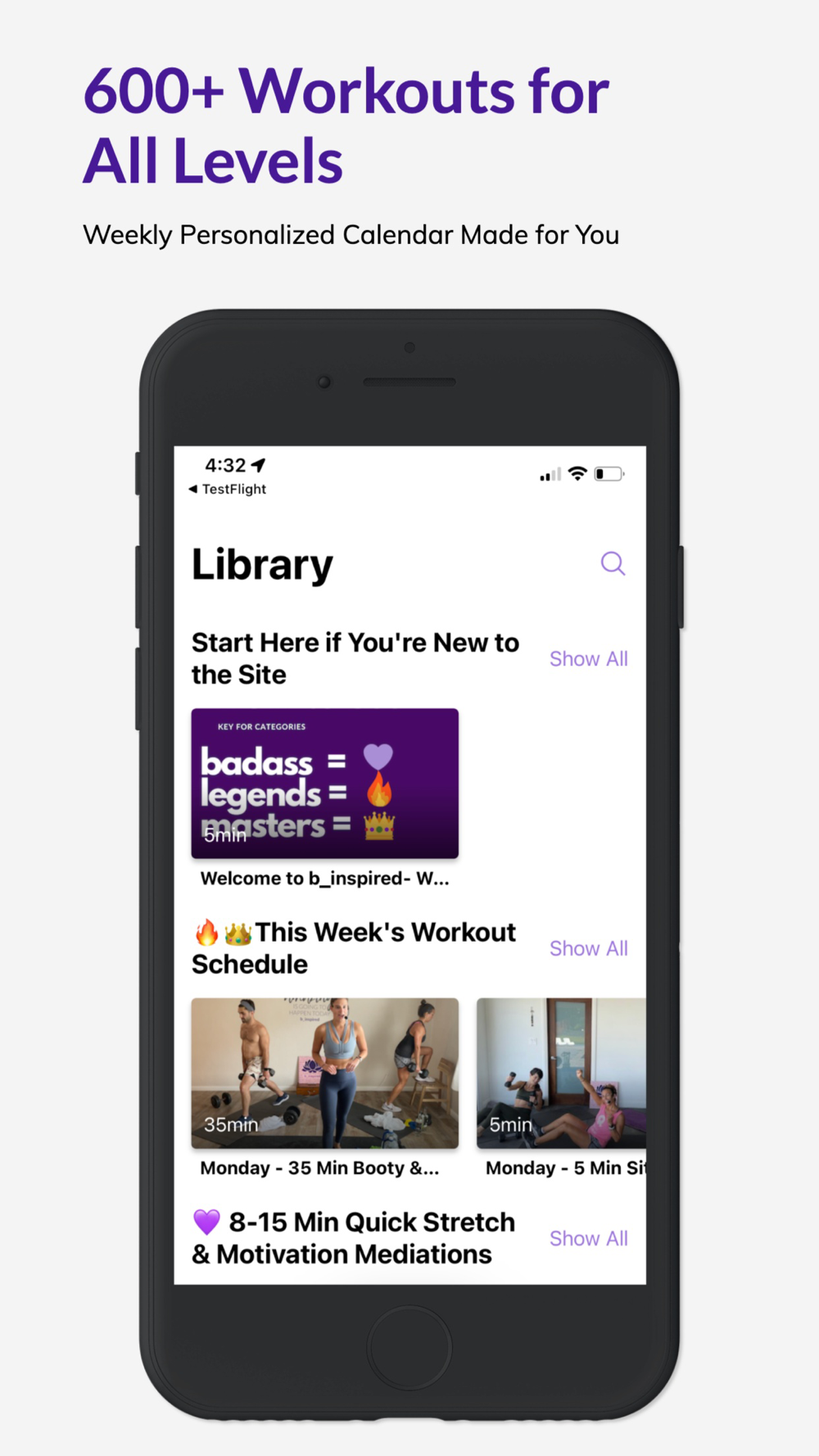 The b_inspired team sends you a Personalized Weekly Workout Calendar to follow so you don't have to think about what workout to choose each day