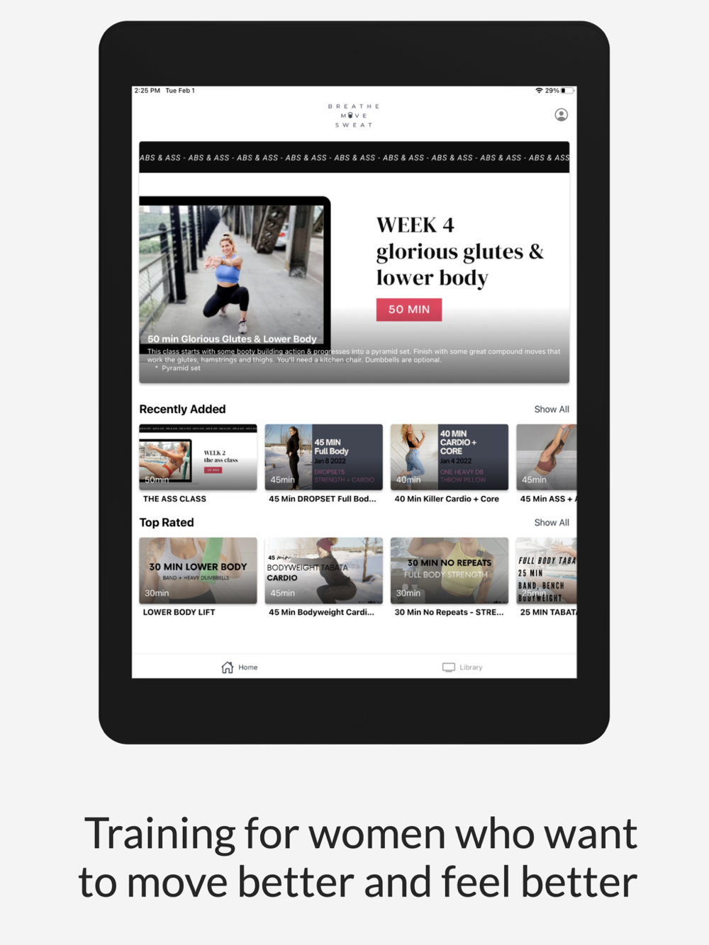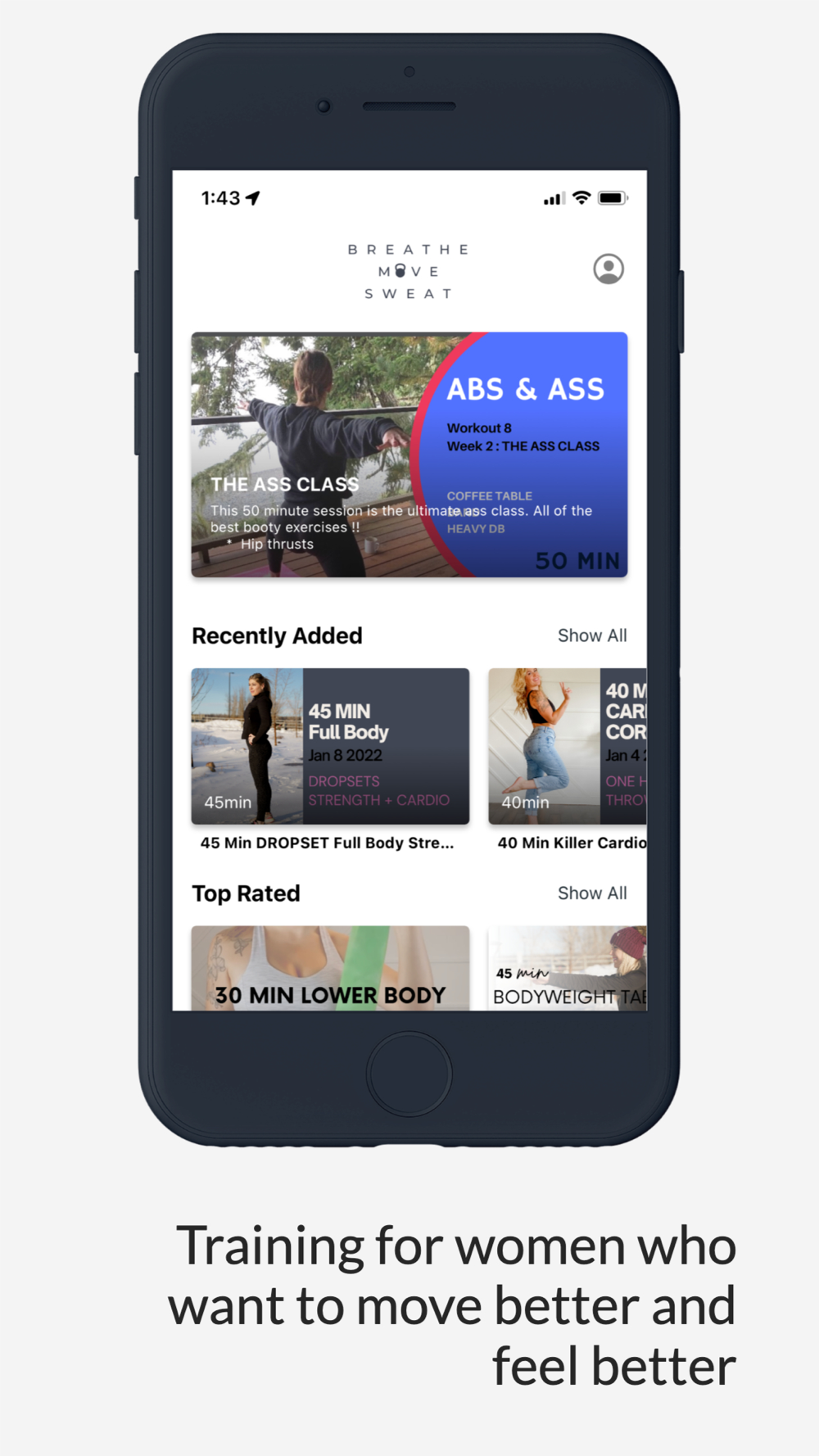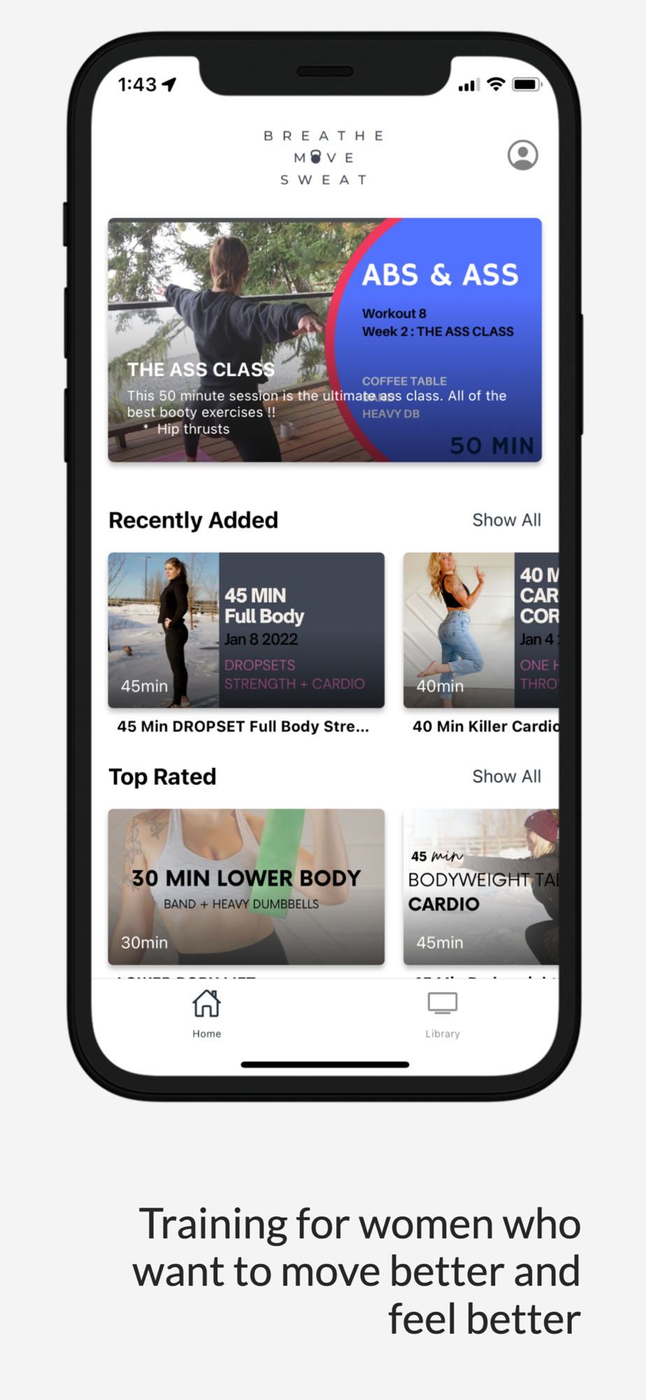 Breathe Move Sweat is like having a personal trainer at your fingertips. If you want to move better and feel better, join us for live sessions, new workouts added weekly, specialized exercise programs, a supportive community and over 100+ on demand classes.