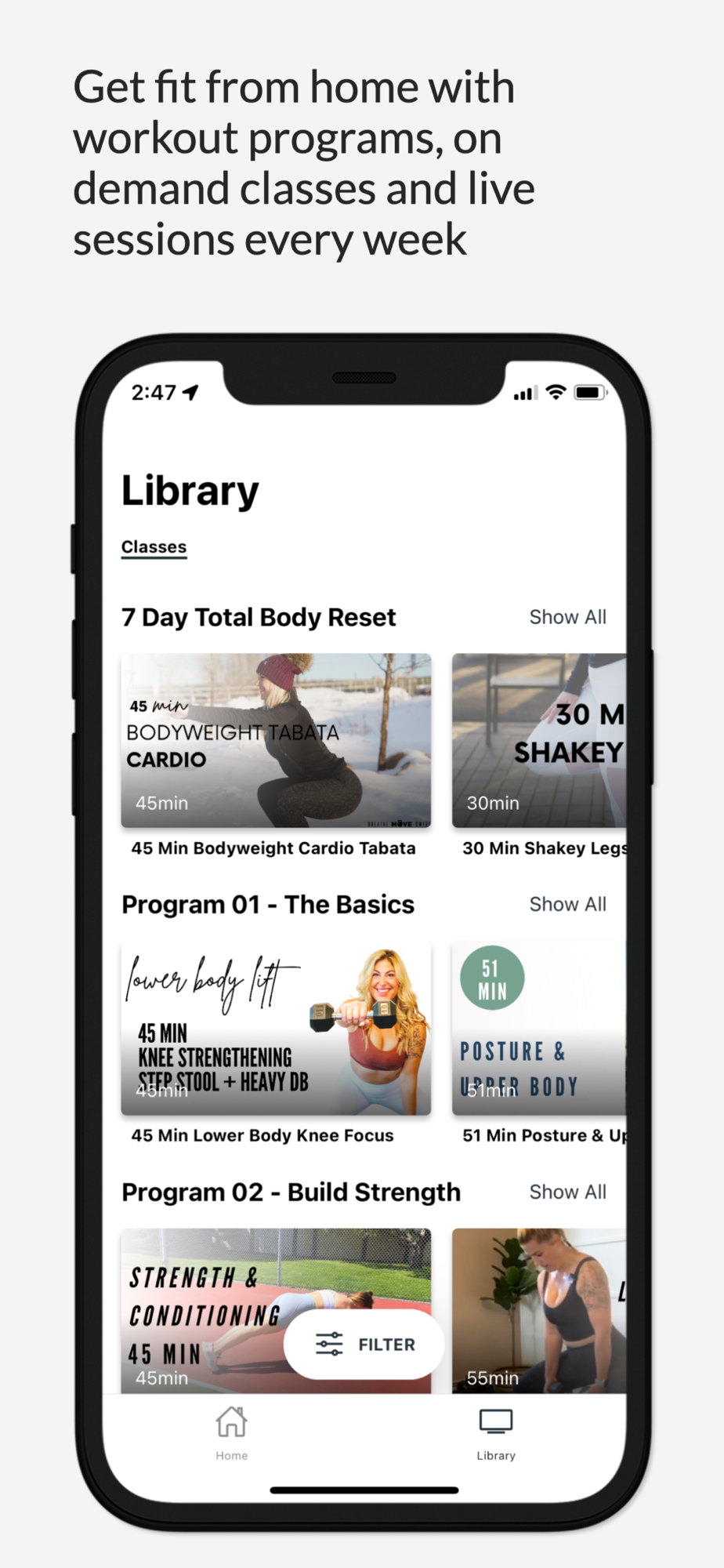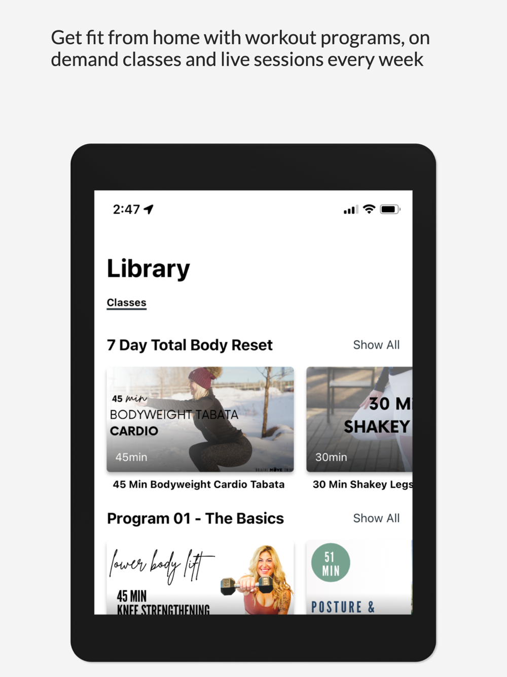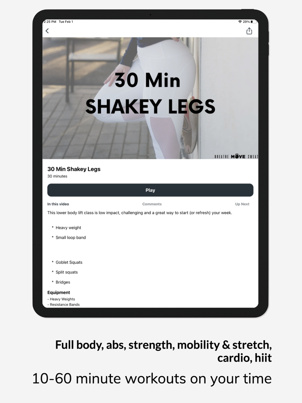 Breathe Move Sweat is like having a personal trainer at your fingertips. If you want to move better and feel better, join us for live sessions, new workouts added weekly, specialized exercise programs, a supportive community and over 100+ on demand classes.