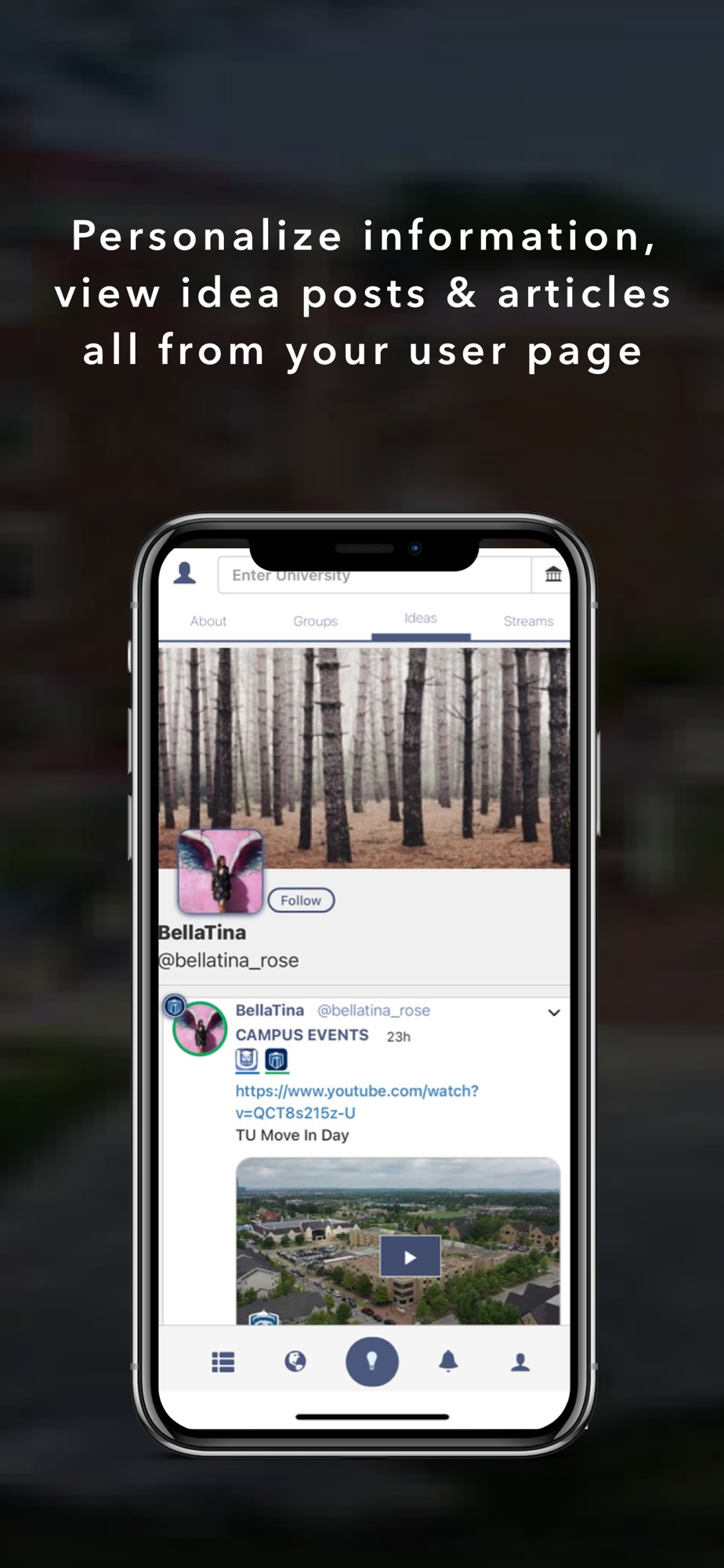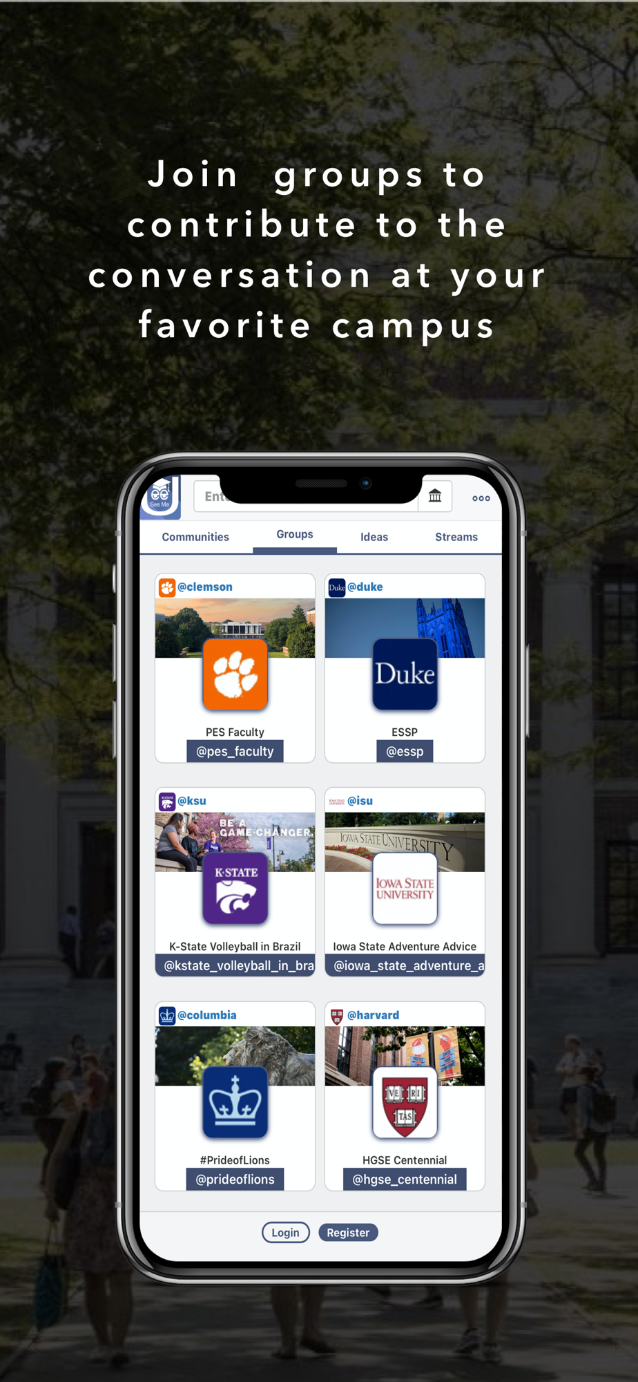 SeeMeU is built for prospective students and any person in the world that wants to connect to a college or university campus experience. All the content posted into each school on SeeMeU is posted by users who are affiliated to their specific campus, or users who have joined groups connected to different schools. Once a user has selected a school to attend in real life, you can Graduate your account and become a special user that shows your school affiliation. Every group you post into that is affiliated to a school you’re not a member of will show your posts as a prospective user (Blue).
