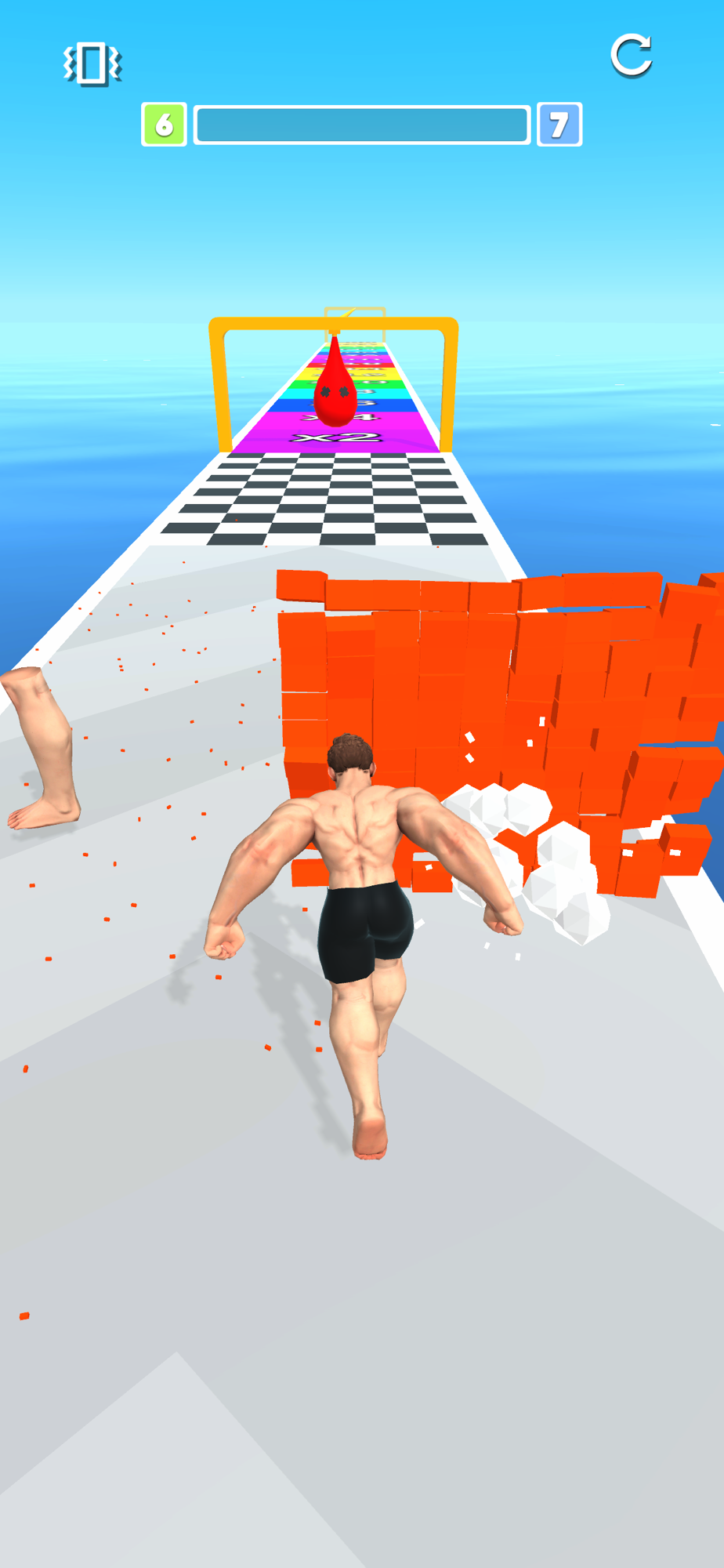 We have a crazy game idea. There are a crazy man that work muscles in certain areas. Just his arm, just his leg, and maybe just his head. This muscle makes an exaggerated development according to the areas it works, and it overcomes the walls that it can break with these limbs. If these limbs are not developed, they can also break with another limb, but loses extra strength.