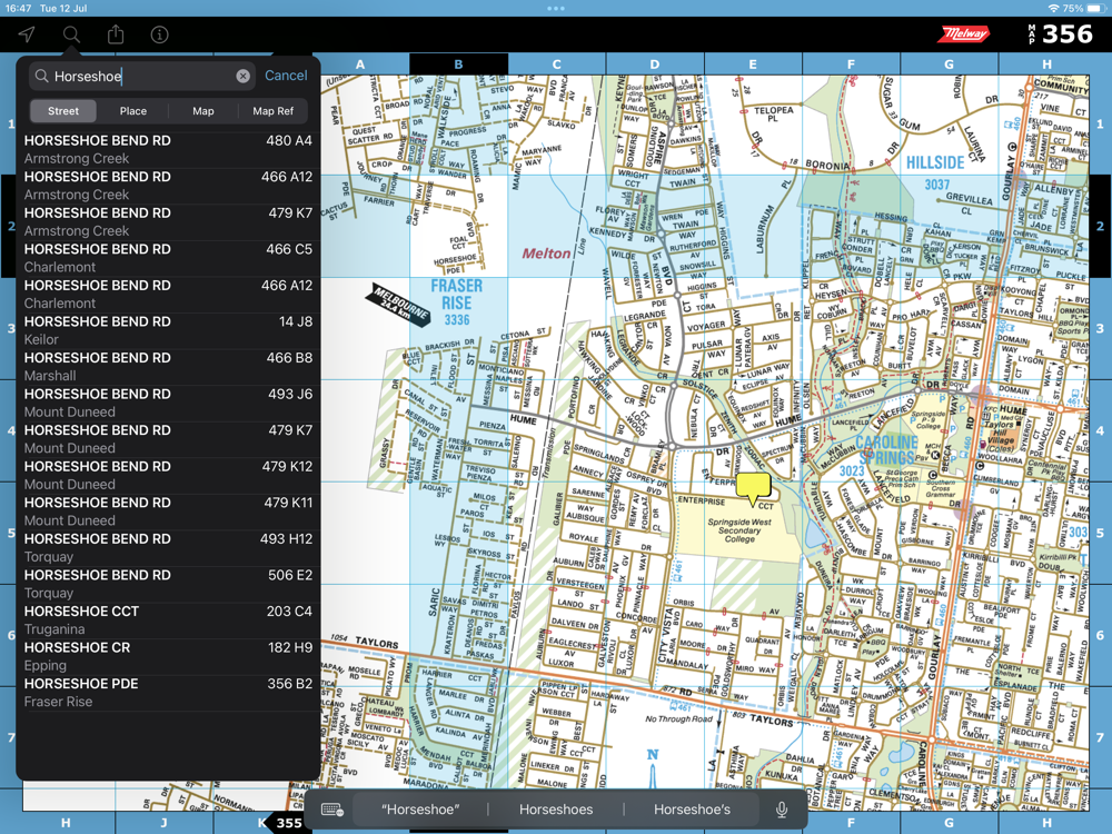 • View Melway map numbers and references, or switch to full screen with a single tap