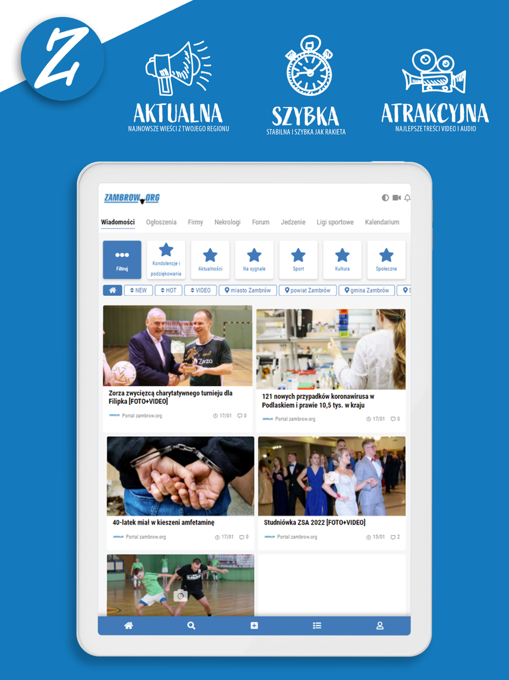 Informacje z miasta Zambrów, powiatu zambrowskiego, gminy Szumowo, gminy Rutki, gminy Kołaki. Praca, ogłoszenia, nekrologi, spotted, kino, forum, zdjęcia, filmy, reklama, telewizja, nieruchomości, usługi, motoryzacja, rolnictwo, firmy.
